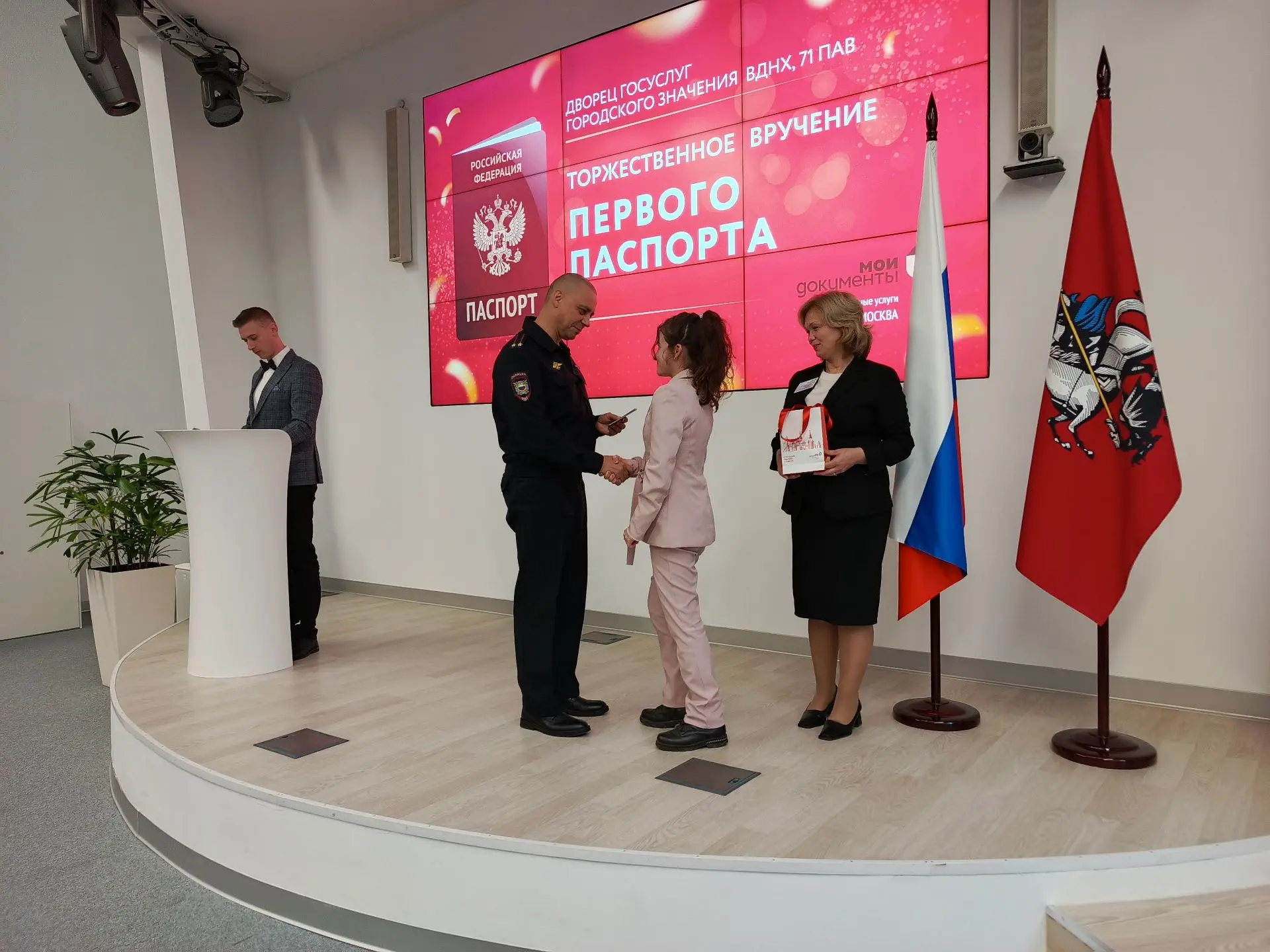 Виталий Чариков, начальник ОВМ ОМВД России по Останкинскому району, призвал помнить о правах и обязанностях ребят, которые стали полноправными гражданами России. Людмила Рощупкина, руководитель МФЦ, пожелала, чтобы паспорт стал пропуском в мир новых возможностей.