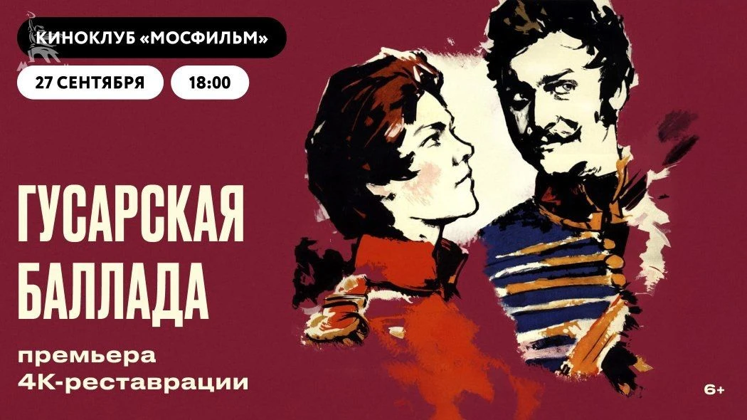 Уже в эту субботу, 27 сентября, новейшую реставрацию «Гусарской баллады» в качестве 4K можно будет посмотреть в кинотеатре Синема Парк Мосфильм. Показ состоится в 18:00 и пройдет на самом большом экране в главном зале кинотеатра. Обязательно присоединяйтесь!