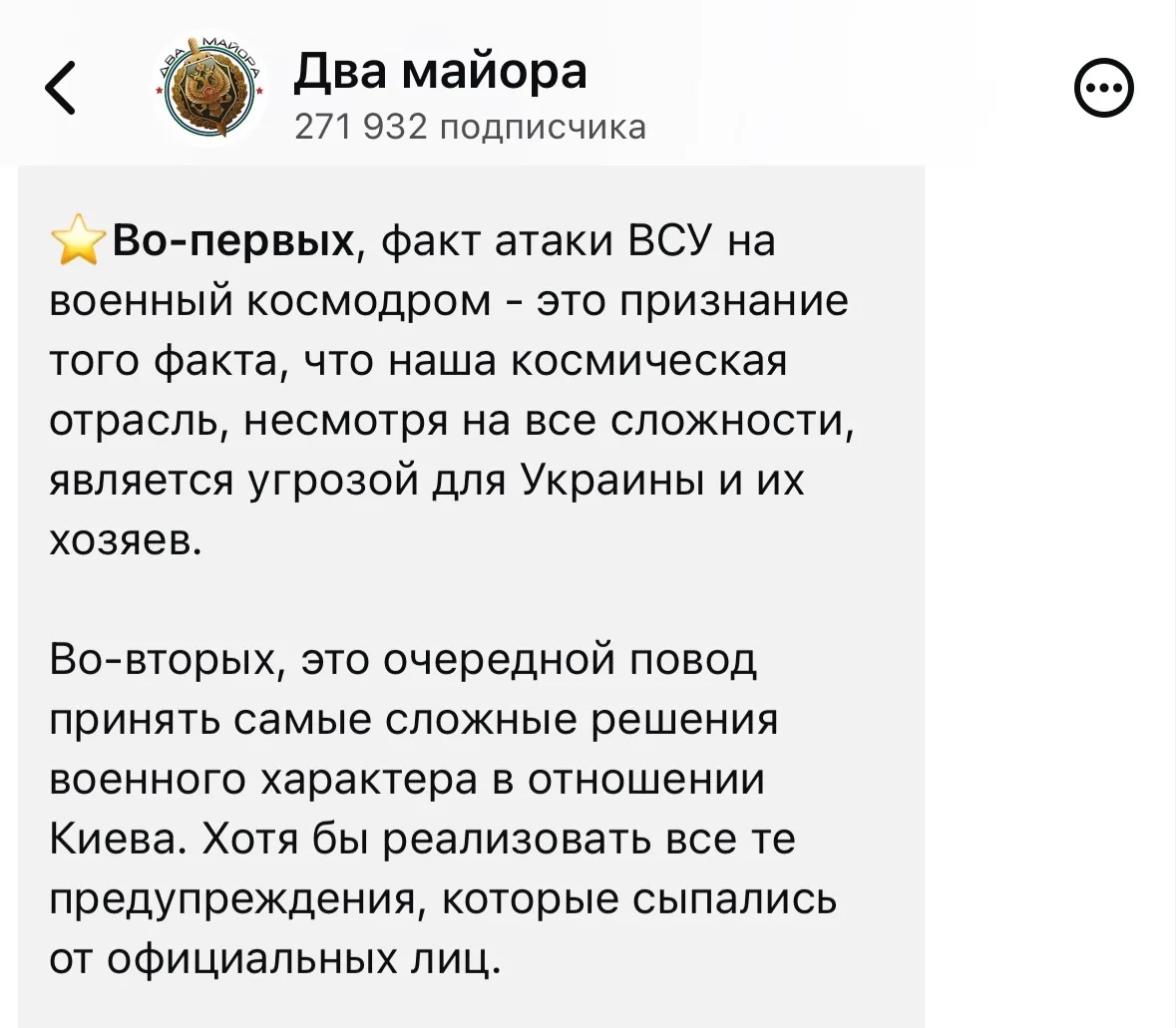 Почему мне понятно, что аннигиляция политического руководства Киева никак не снизит интенсивность (разве что в моменте) беспилотных атак, а ликвидация украинского недогосударственного образования не оставит между Россией и НАТО никакого буфера )за сохранение нейтралитета которого началась СВО), а военблогерам непонятно?