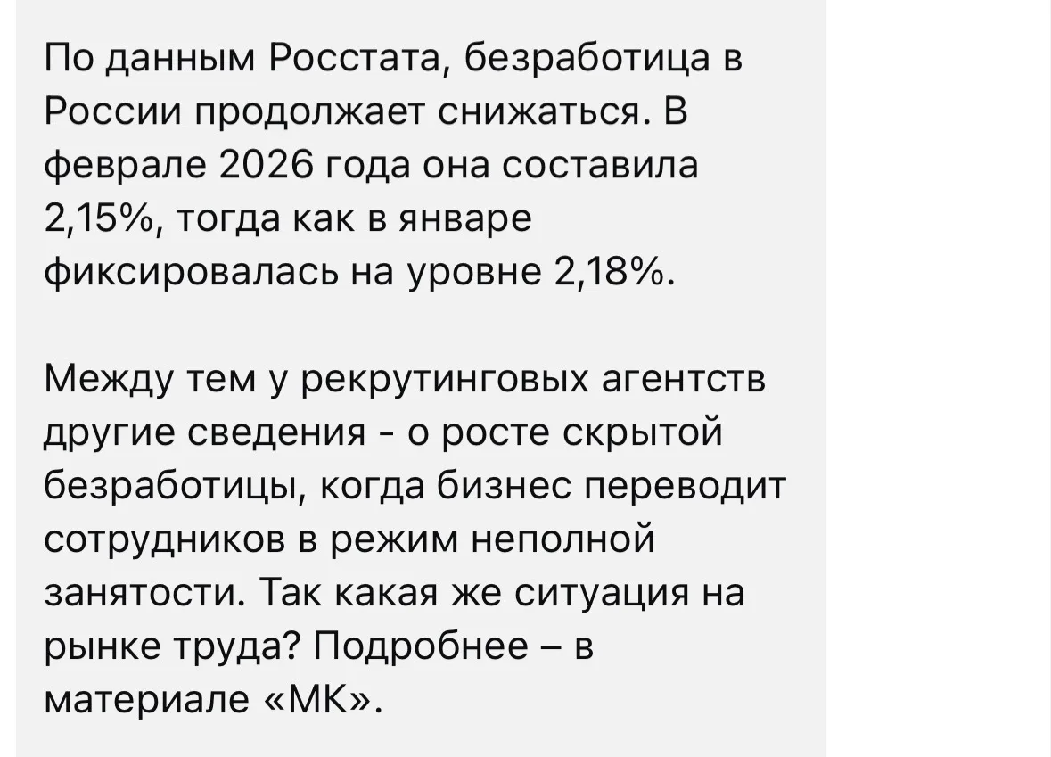 Вот и сидят на полставки, курьеря/таксуя в освободившееся время. Поэтому, говорить о безработице, в аспекте незанятости, не есть правильно.