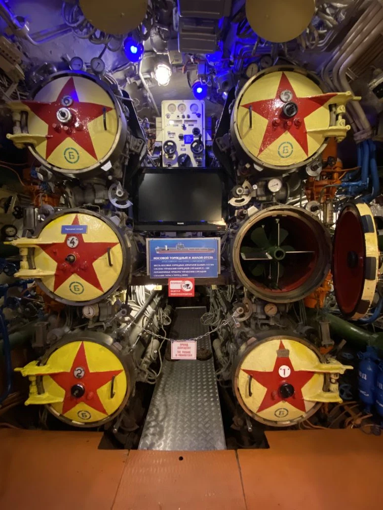 ✔️1 носовой и жилой отсек –в нём представлена экспозиция «Из истории подводного флота России», рассказывающая о русских изобретателей – от идеи «потаённого судна» Ефима Никонова, первой боевой подводной лодки «Дельфин» до современных подводных лодок.