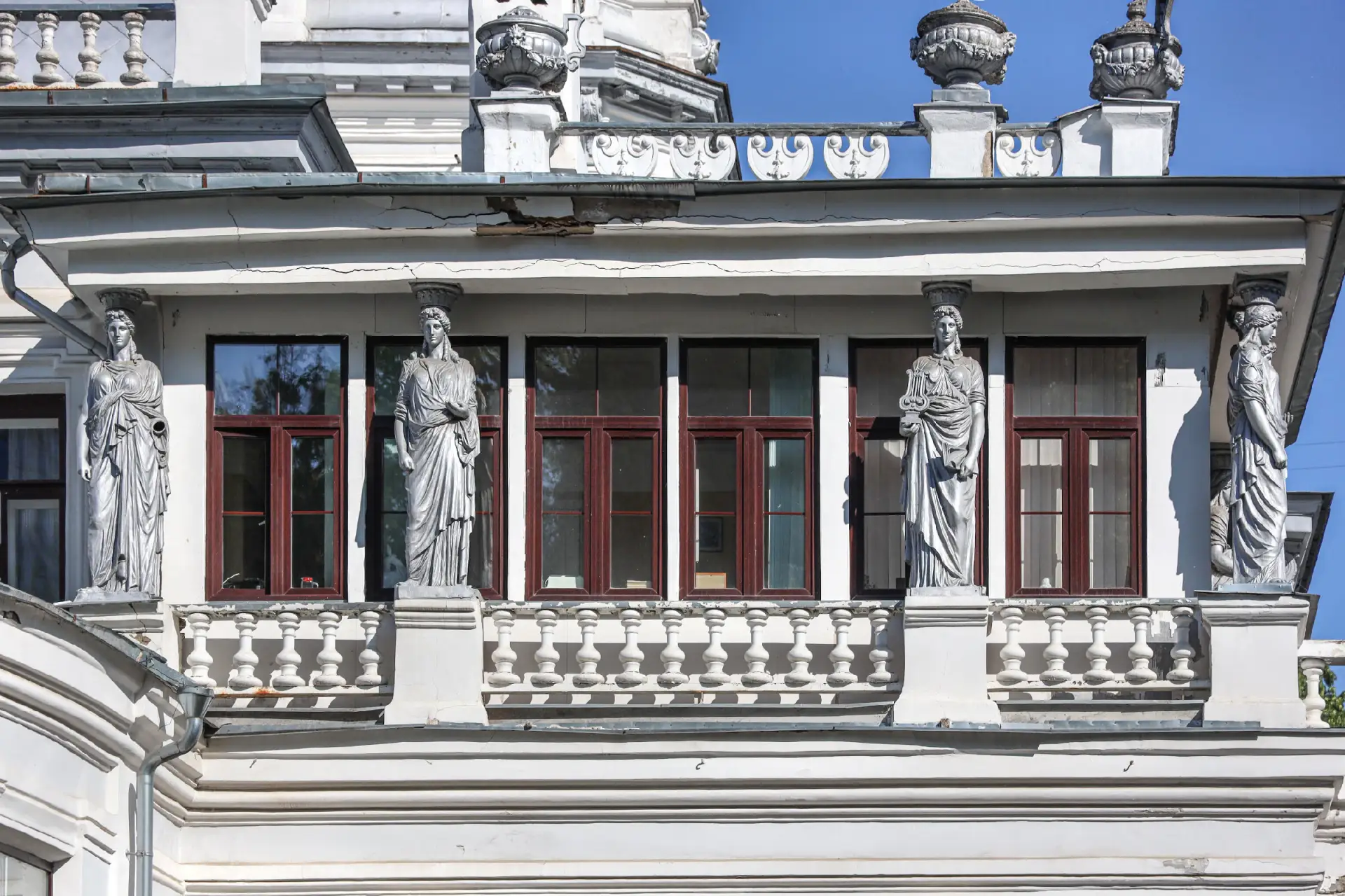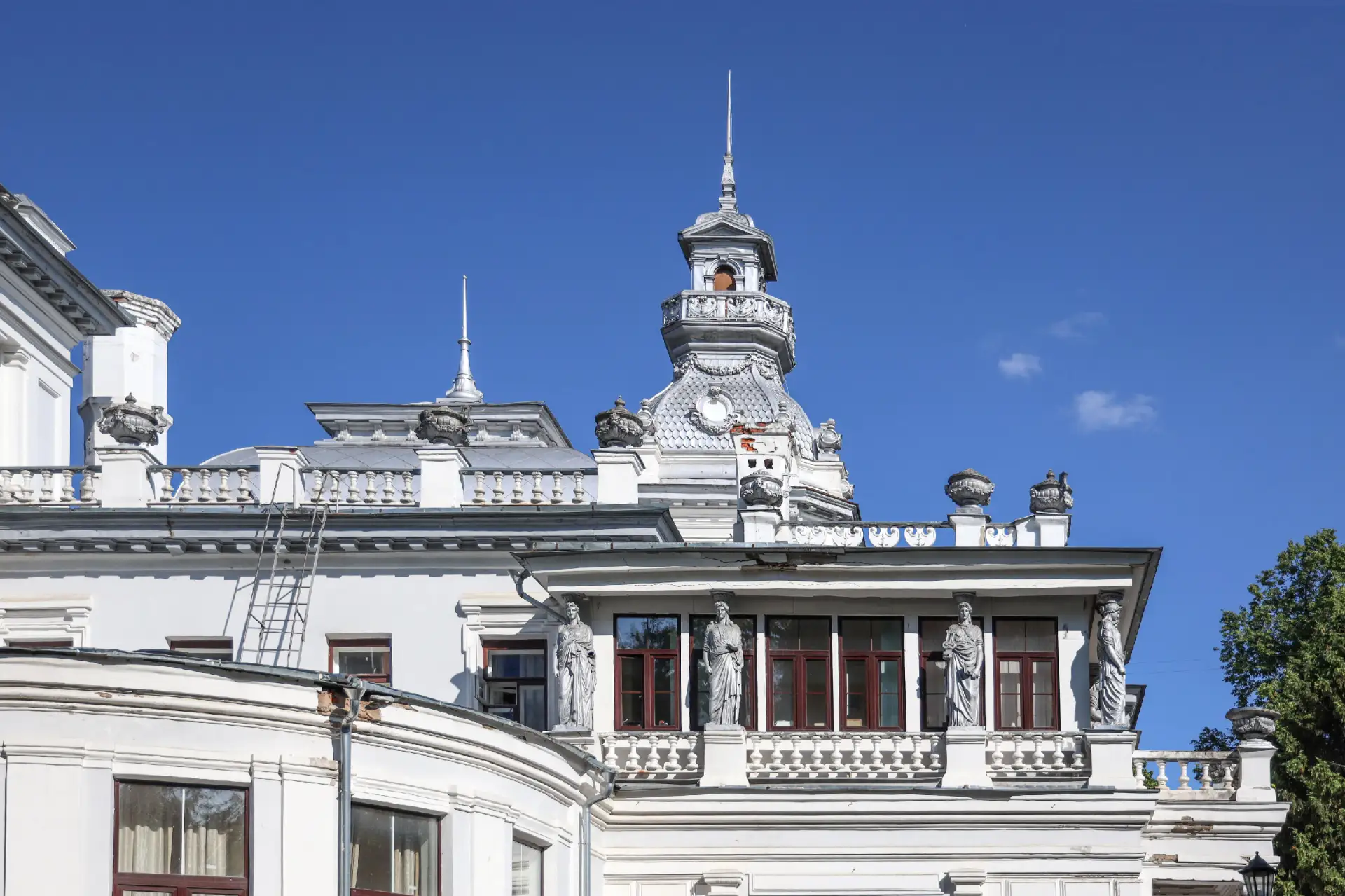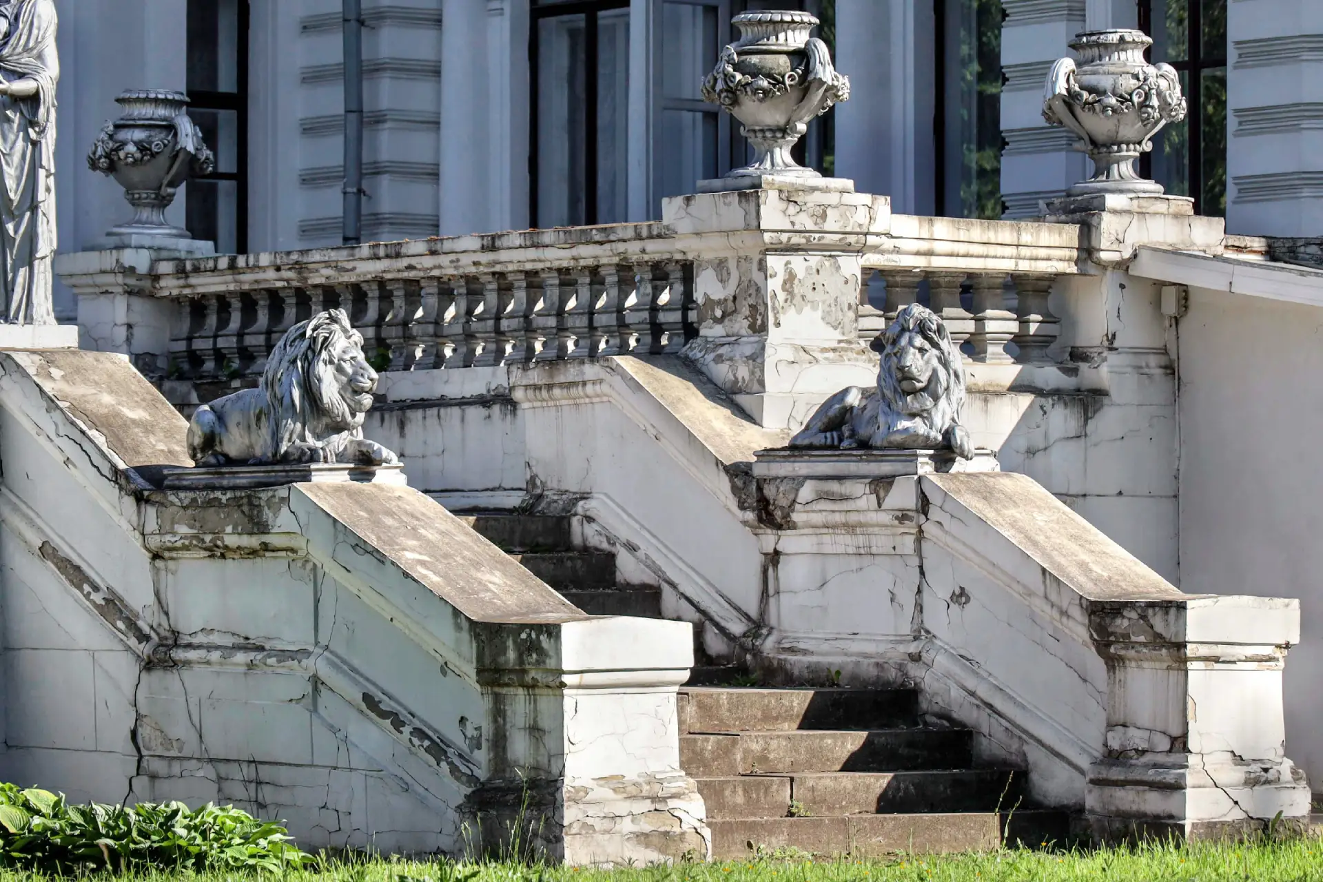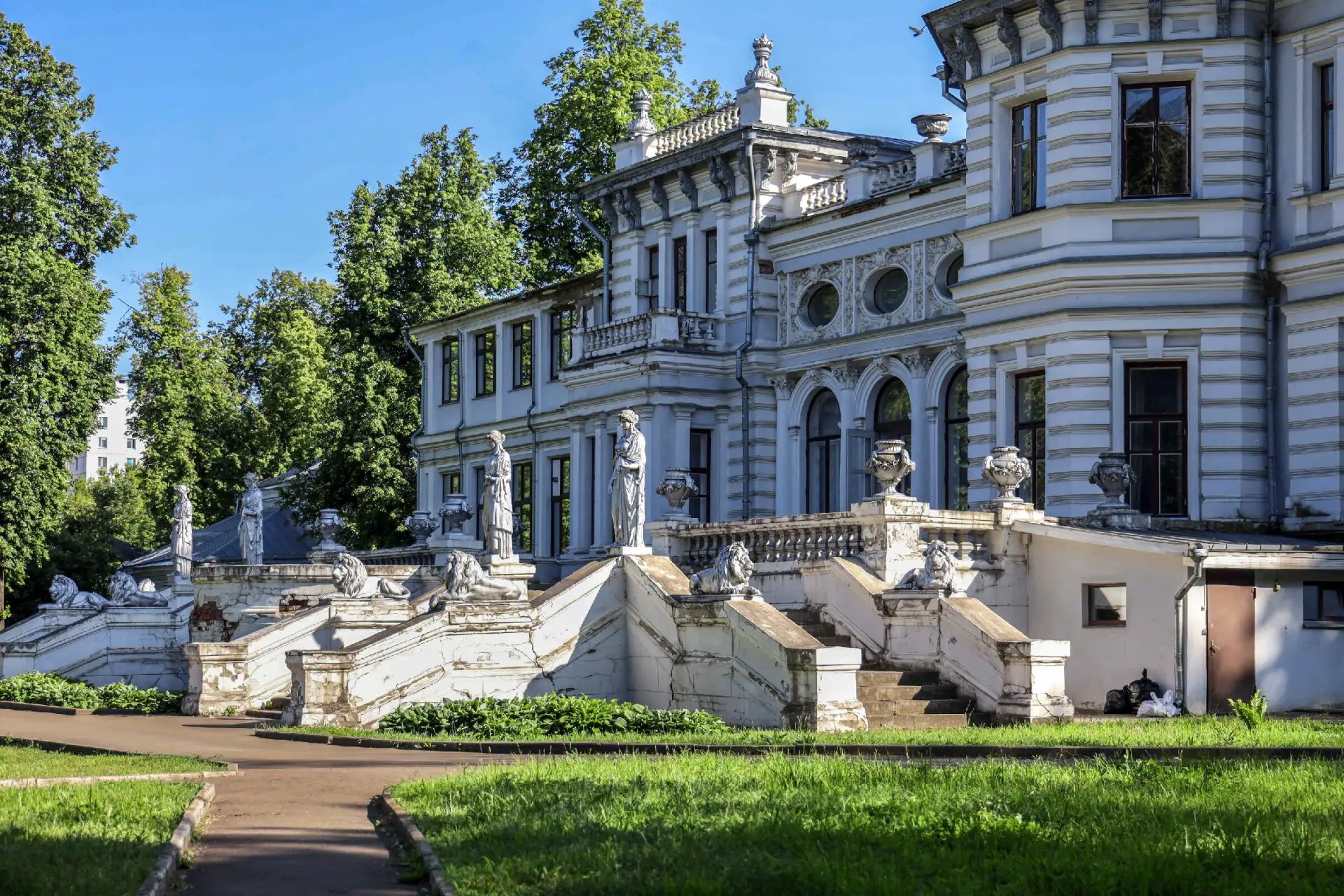 Усадьба Грачёвка. На окраине Москвы раскинулся Грачёвский парк – часть усадьбы Ховрино (Грачёвка). Главный дом – причудливый образец архитектуры рубежа веков, напоминающий силуэтом застывшую волну. Изящные кариатиды, богатая лепнина и суровые львы у входа только усиливают впечатление от здания.