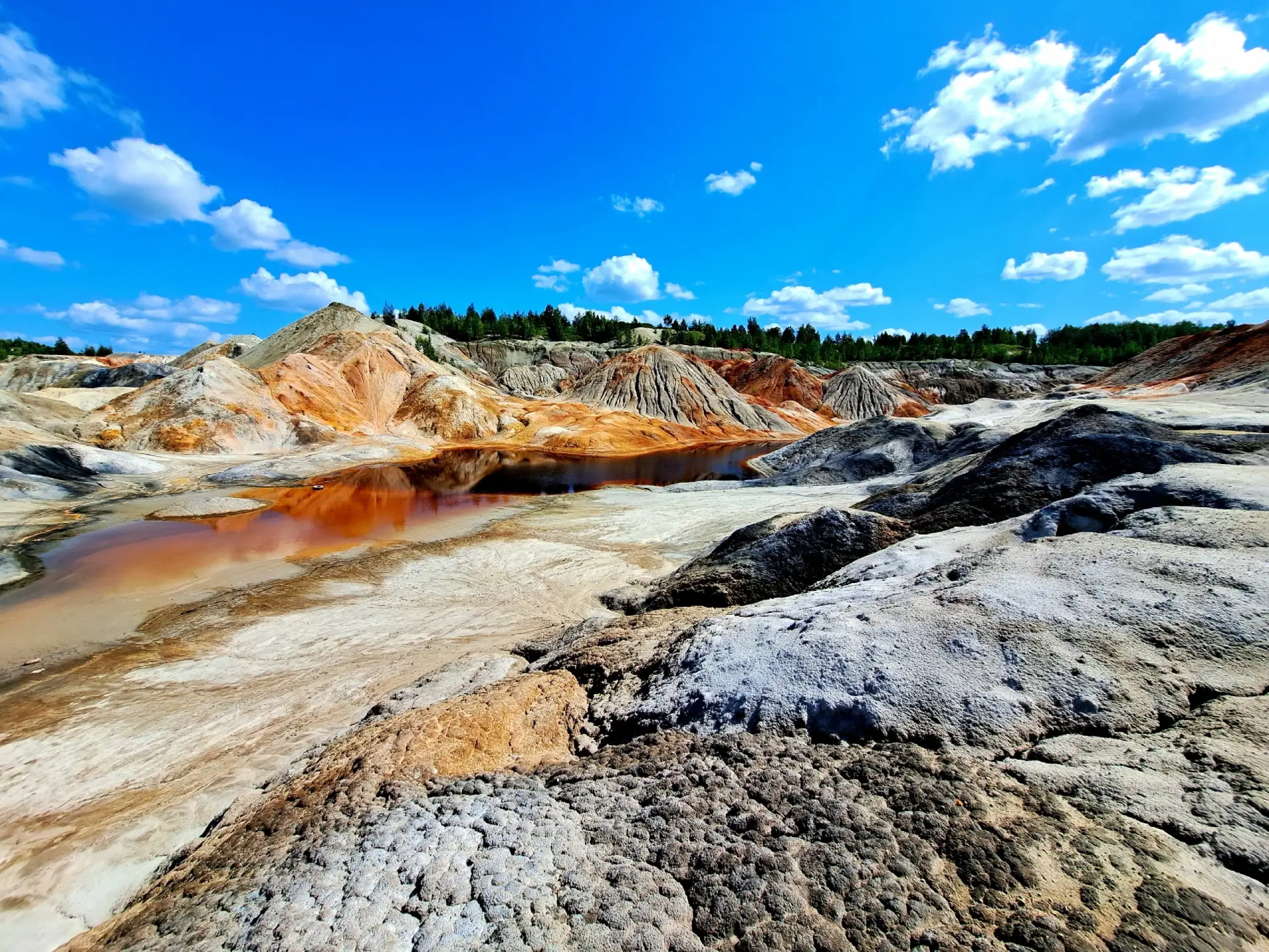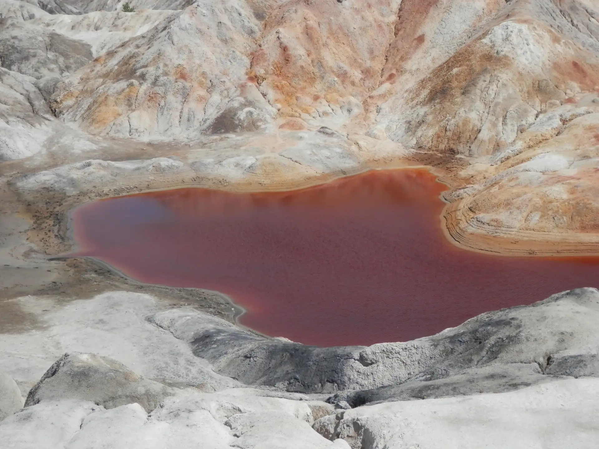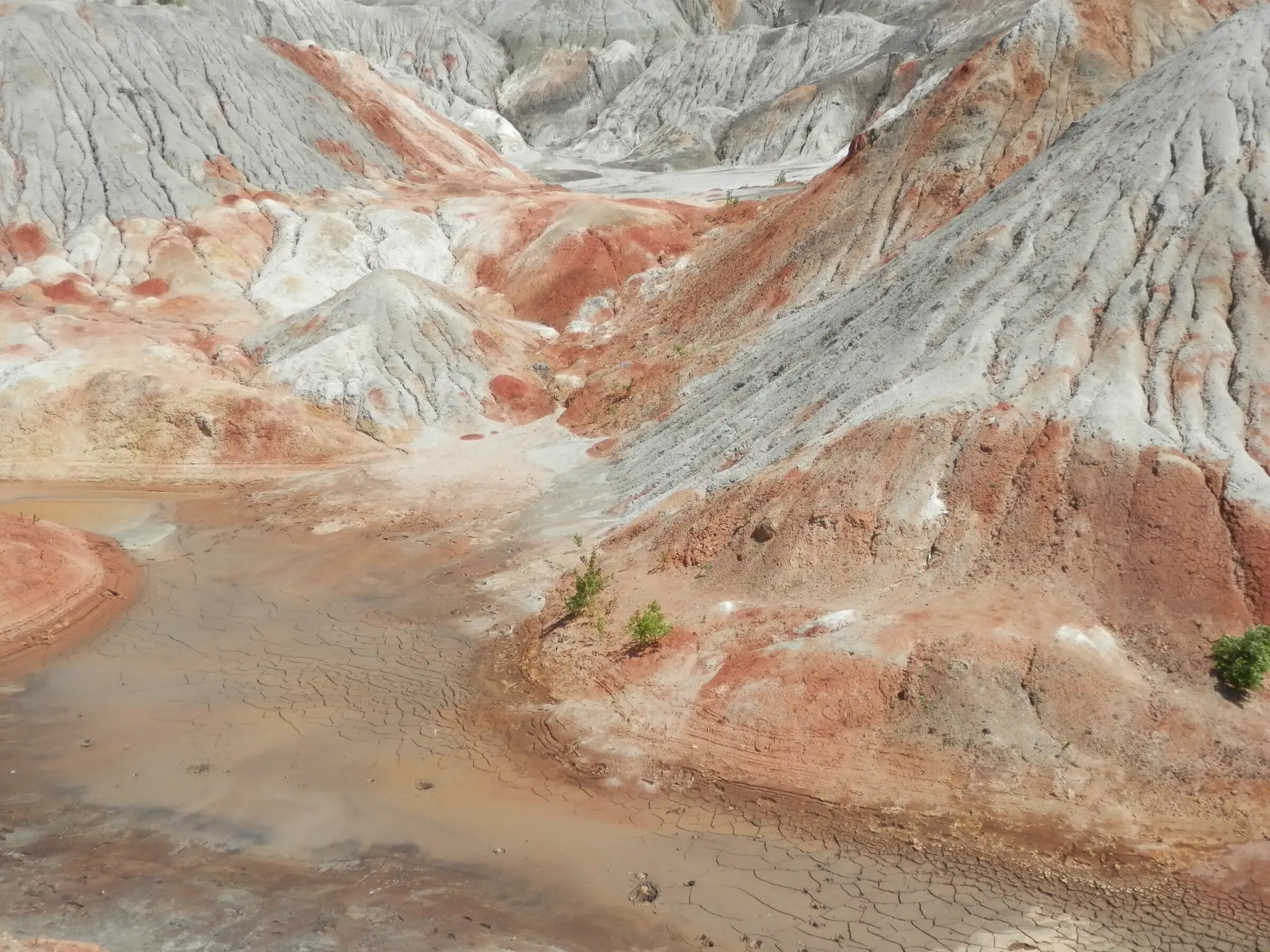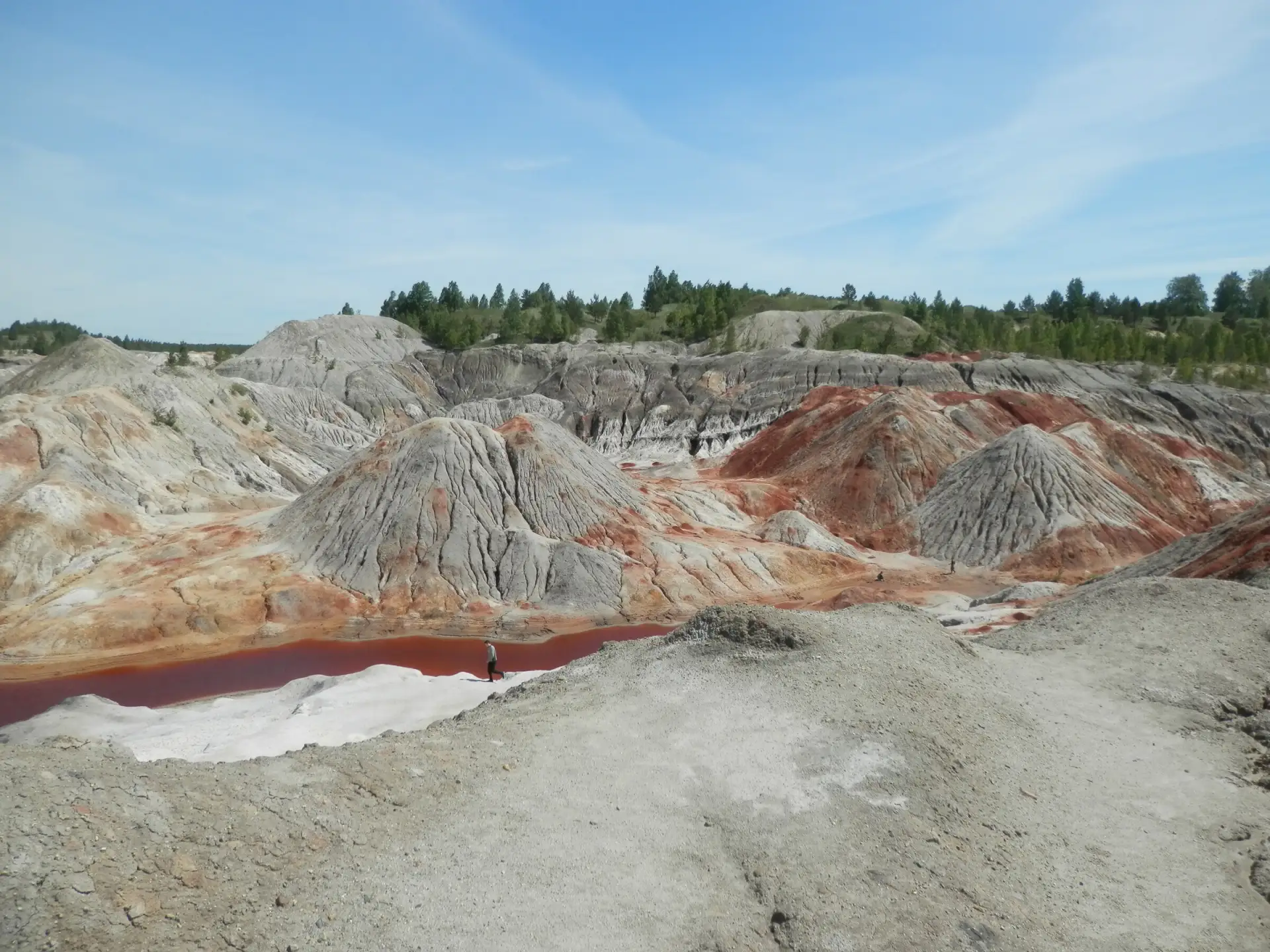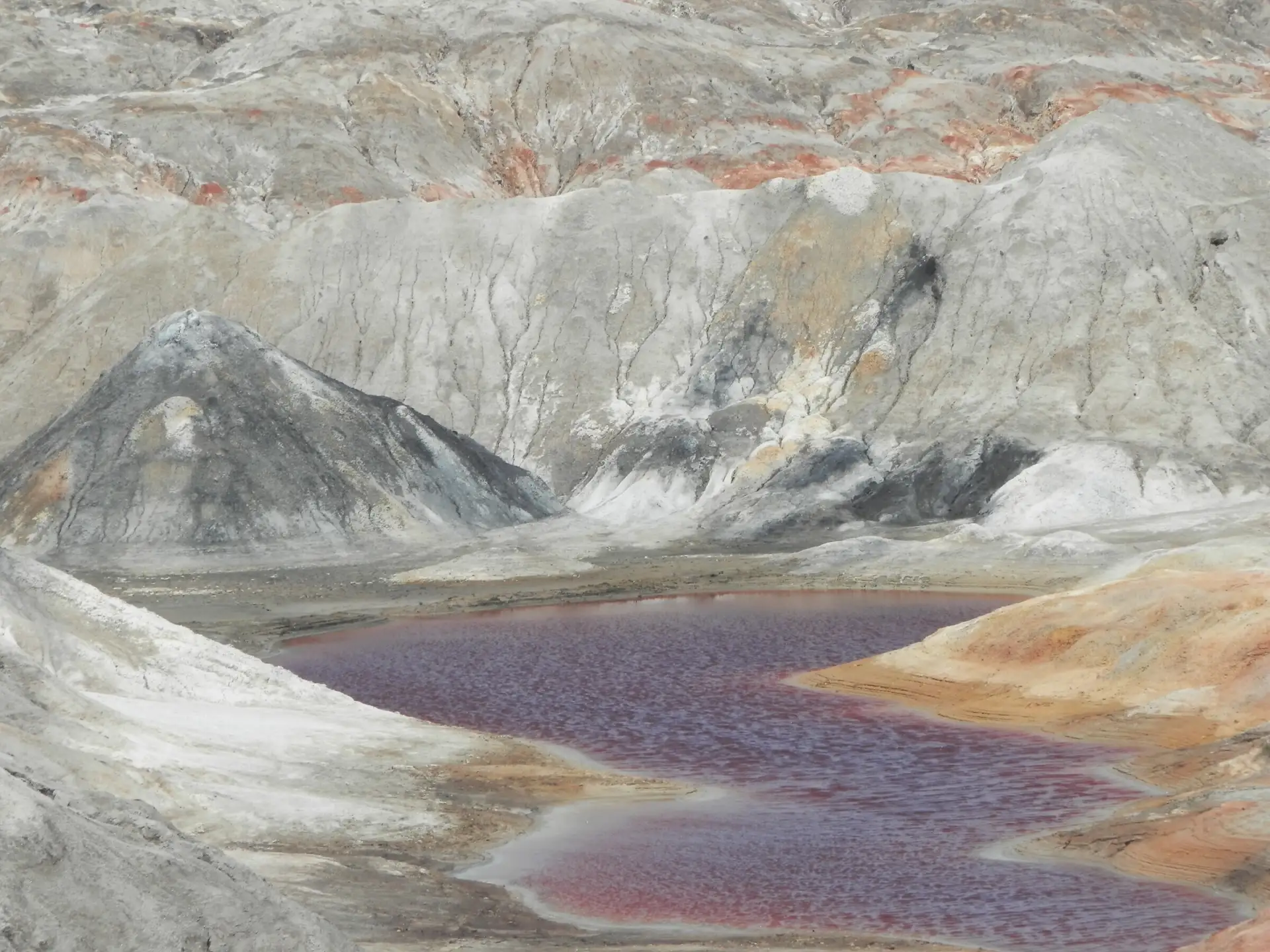 Цвет глины зависит от того, каких примесей в ней больше. Во многих местах глина пересохла, и почва растрескалась. На территории Уральского Марса также можно увидеть несколько озер необычной окраски.