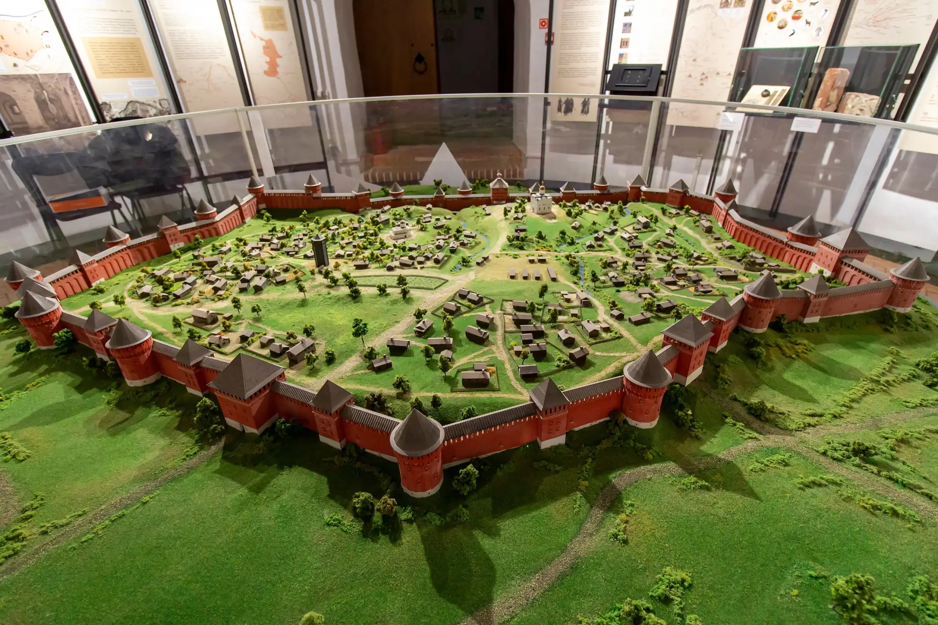 Посетители получают уникальную возможность взглянуть на старинное сооружение изнутри. Второй ярус занимает экспозиция, которая рассказывает о том, как велось строительство стены и какую роль она сыграла в период Смуты на Руси.
