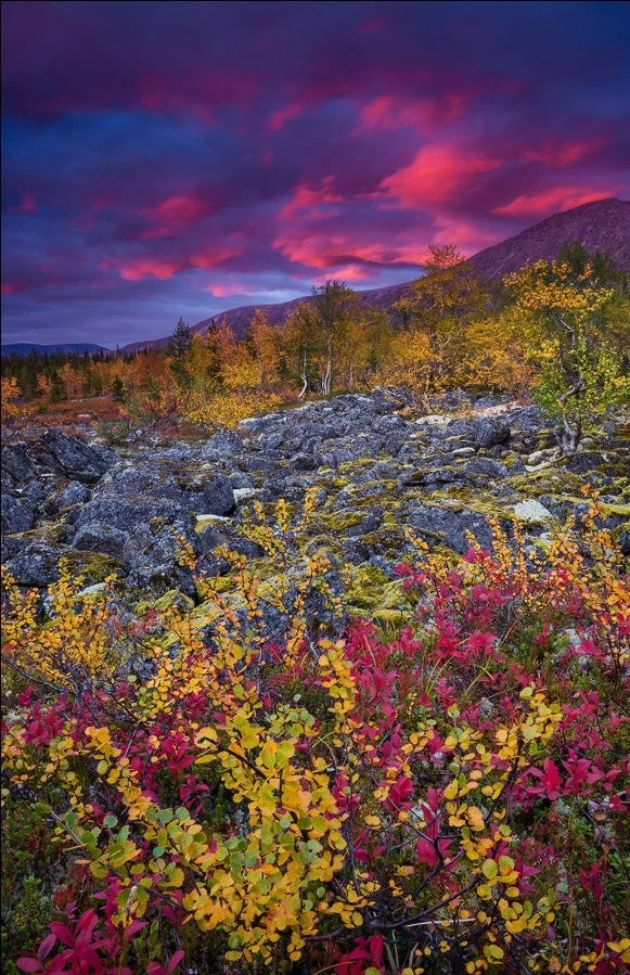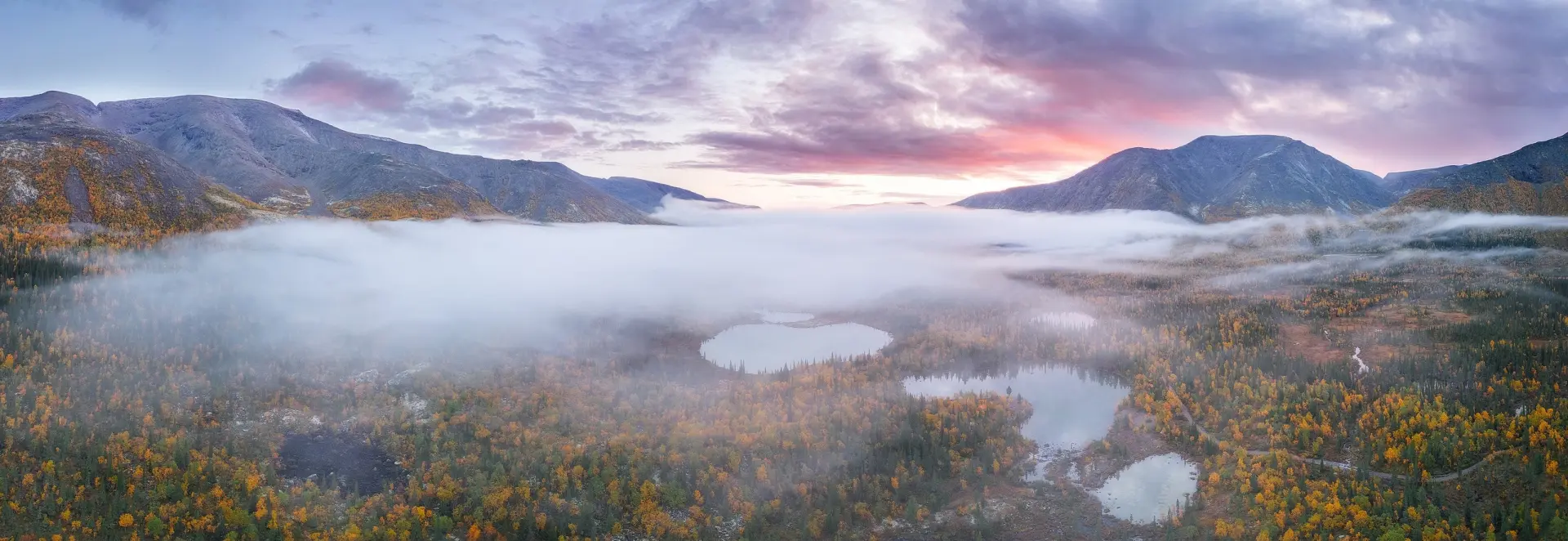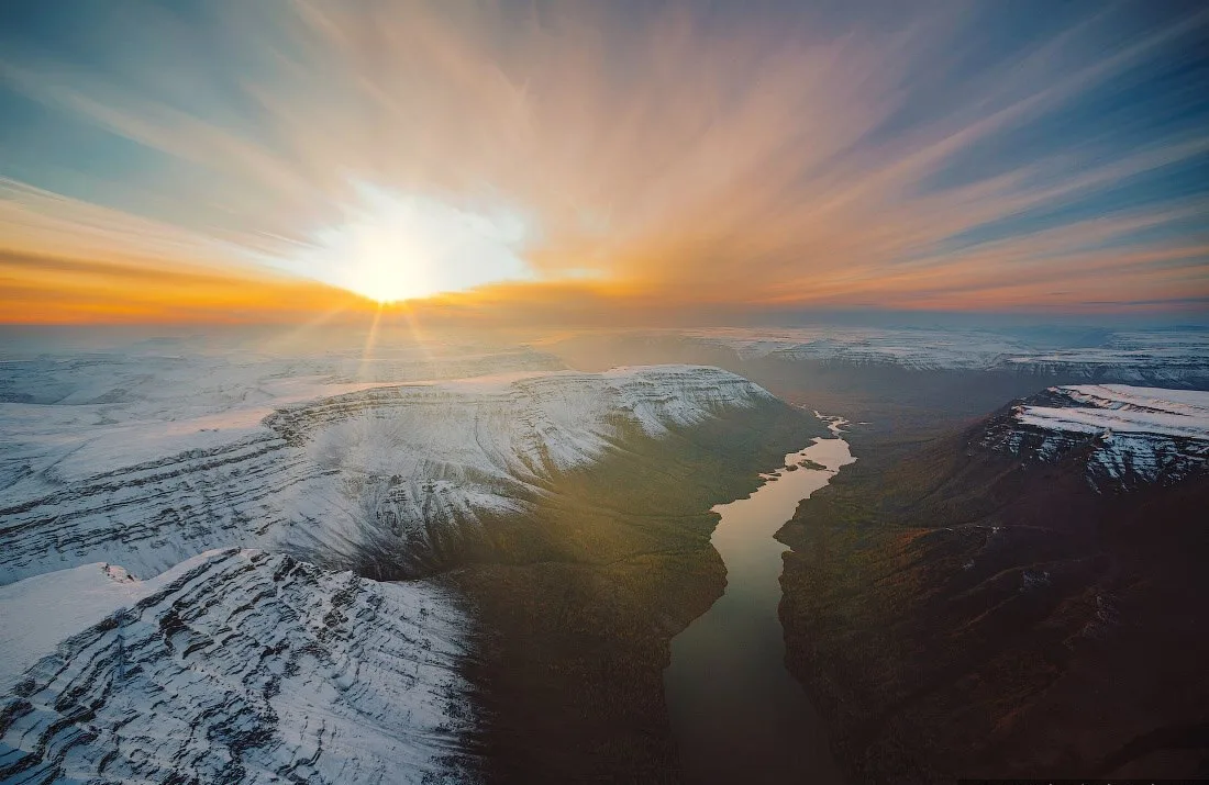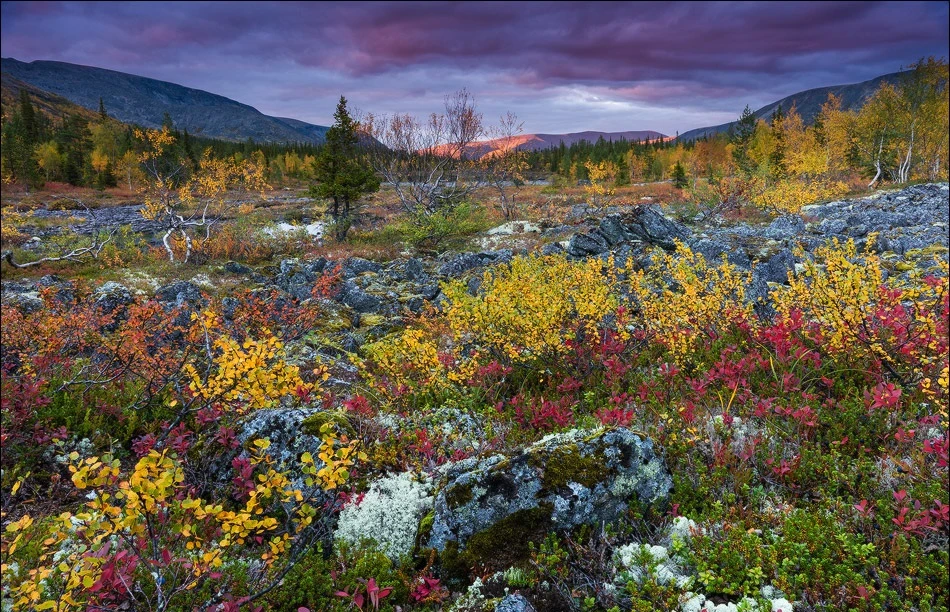 Долина реки Кунийок начинается от перевала Кукисвум и делит Хибинский массив на две части: западную и восточную.