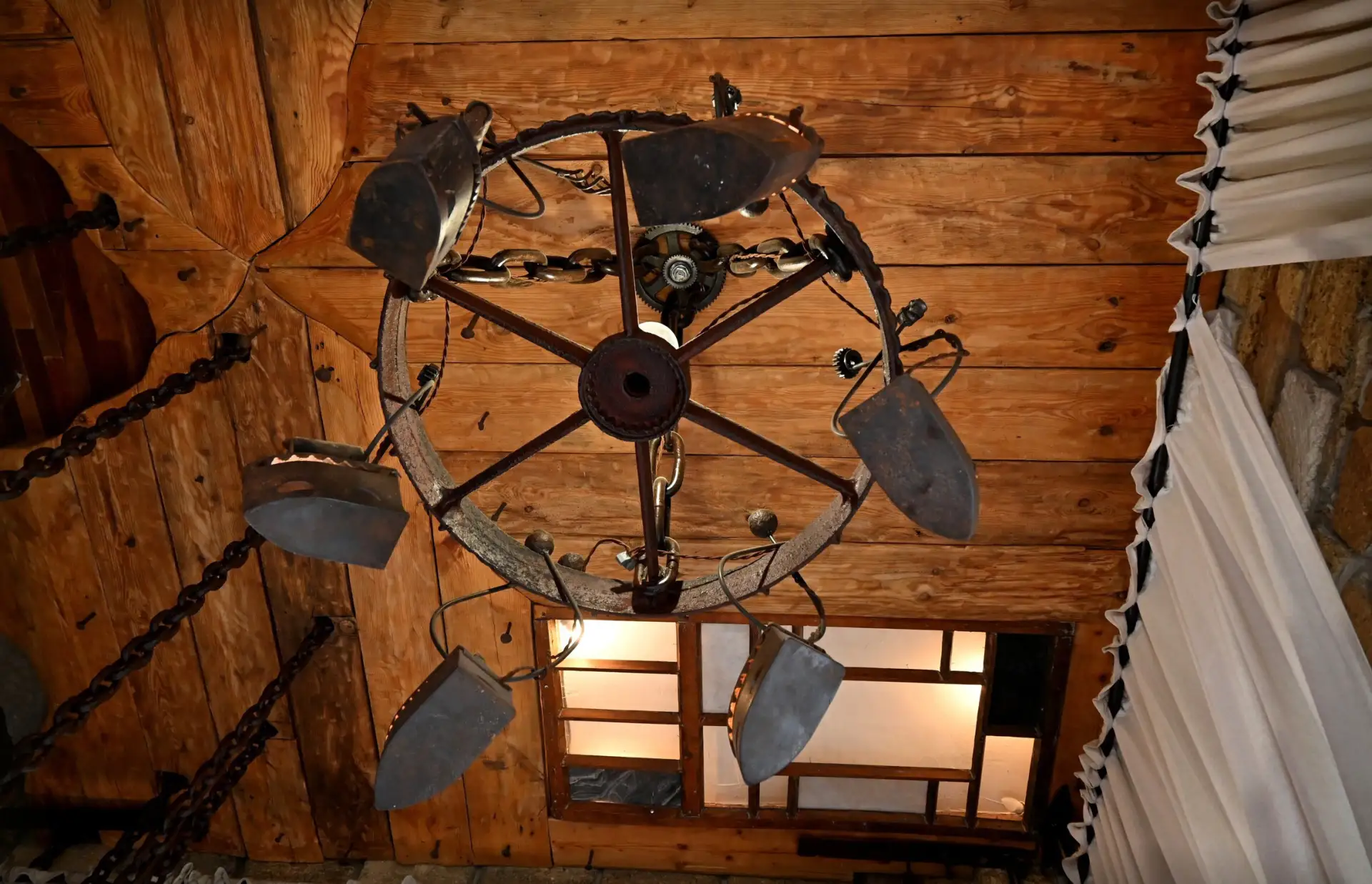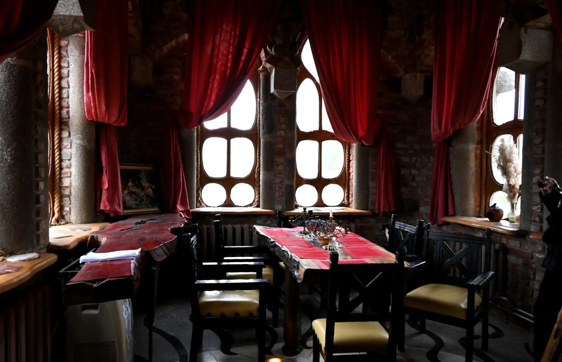 Уникальные каменные и деревянные интерьеры, полностью выполненные вручную, созданы в каждом помещении замка и поражают воображение всех гостей. Для отделки здесь везде использовались исключительно природные материалы.