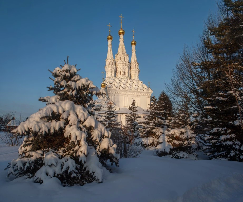 Устремленная ввысь своими куполами белоснежная святыня словно парит над землей.