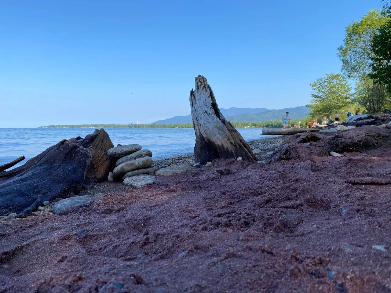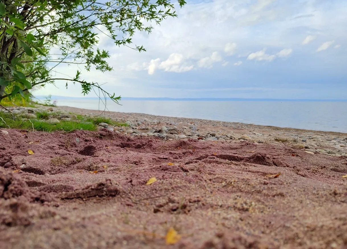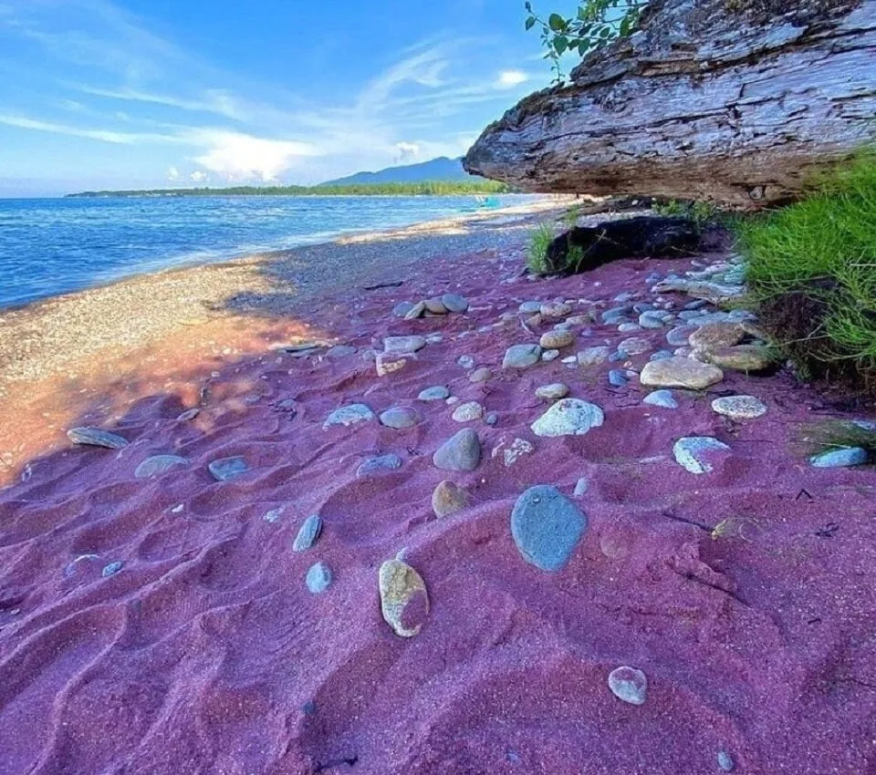 Гранатовый пляж, или пляж Красные пески, на южном побережье озера Байкал. Оба названия пляжа обусловлены наличием на берегу песка красно-бордового оттенка, а одно из них напрямую указывает его состав: удивительный песок складывают мелкие частицы минерала граната альмандина, вымытого ручьями из ближайших гор.