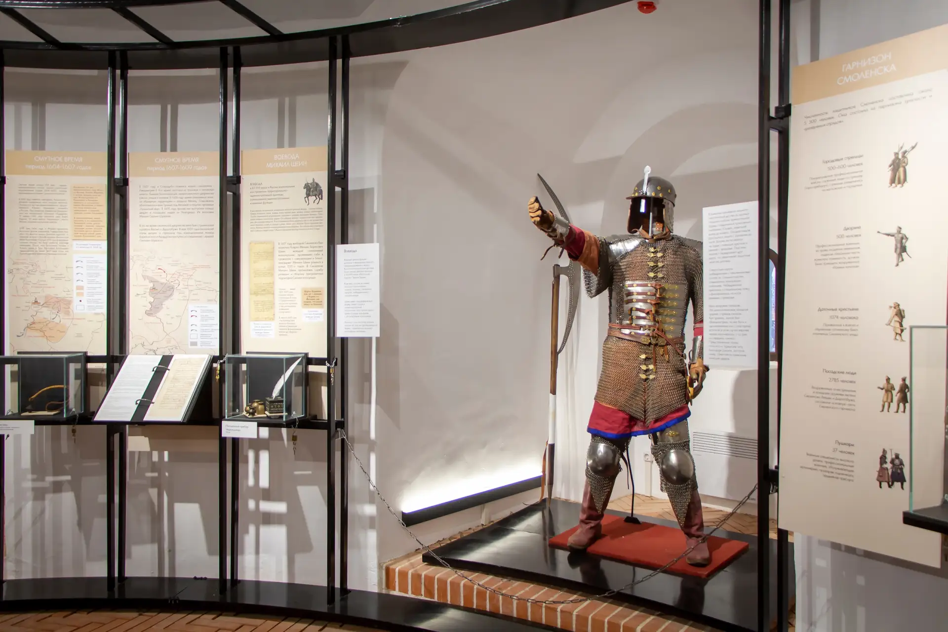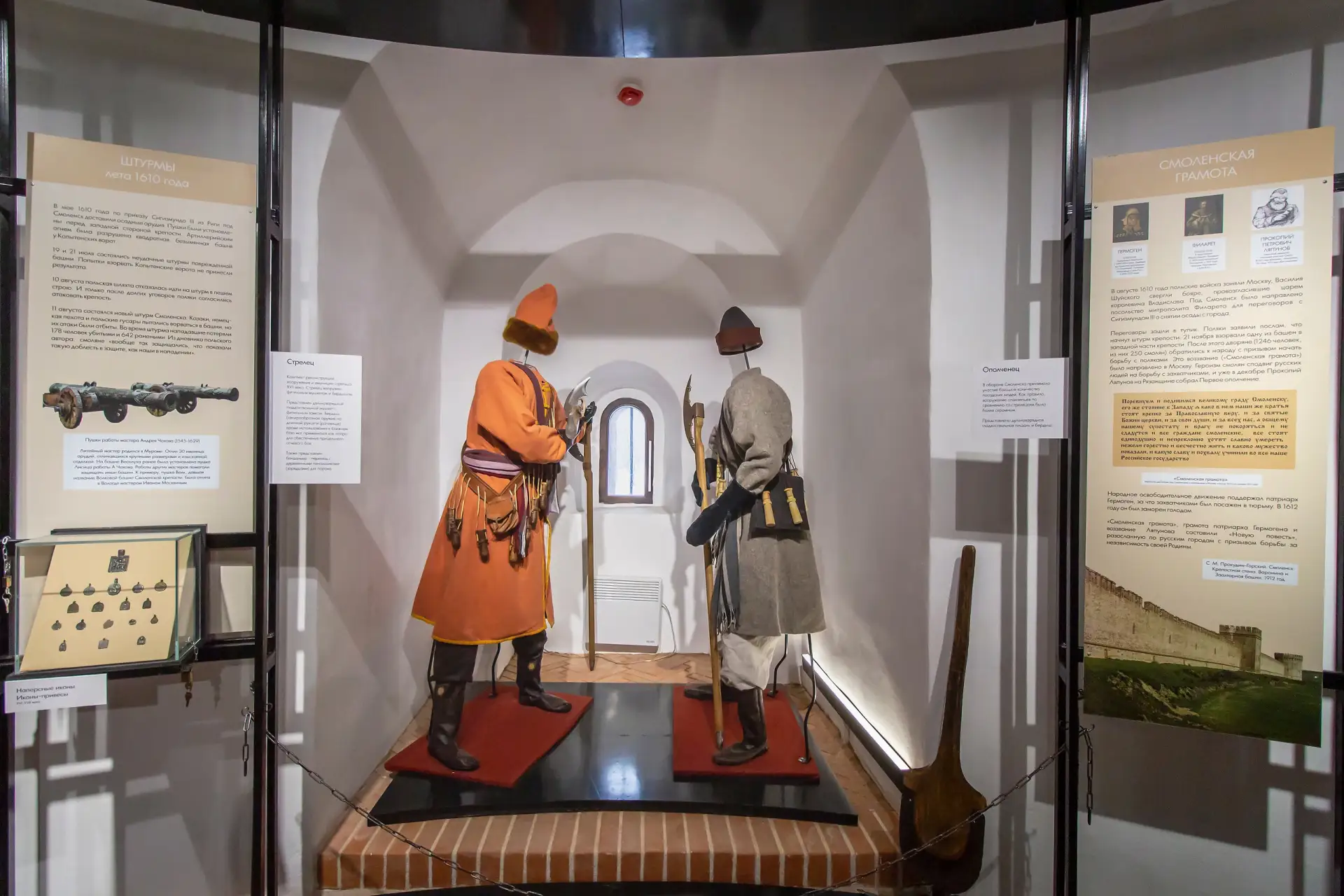 В коллекции представлены предметы, датированные XVI—XVII вв., макет Смоленской крепости, а также реконструкции вооружения и исторического военного костюма русской и польской армий.