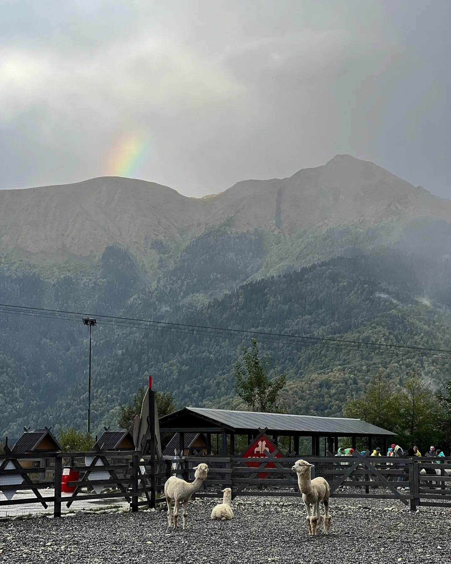 Парк альпак «Пача Мама» в Краснодарском крае находится рядом с экстрим-парком горнолыжного курорта «Роза Хутор» под кресельной канатной дорогой «Экстрим».
