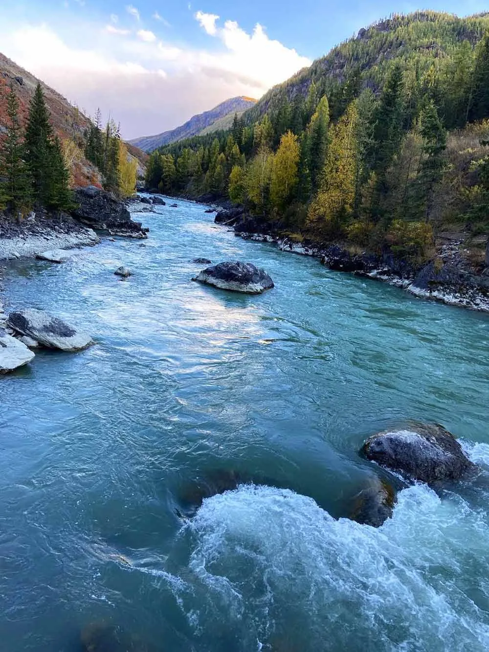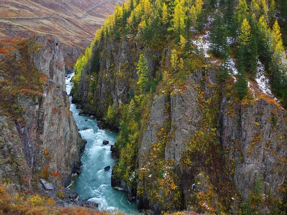 Всего на Мажойском каскаде насчитывается более 30 порогов. Координаты смотровой площадки: 50.29048, 87.510298
