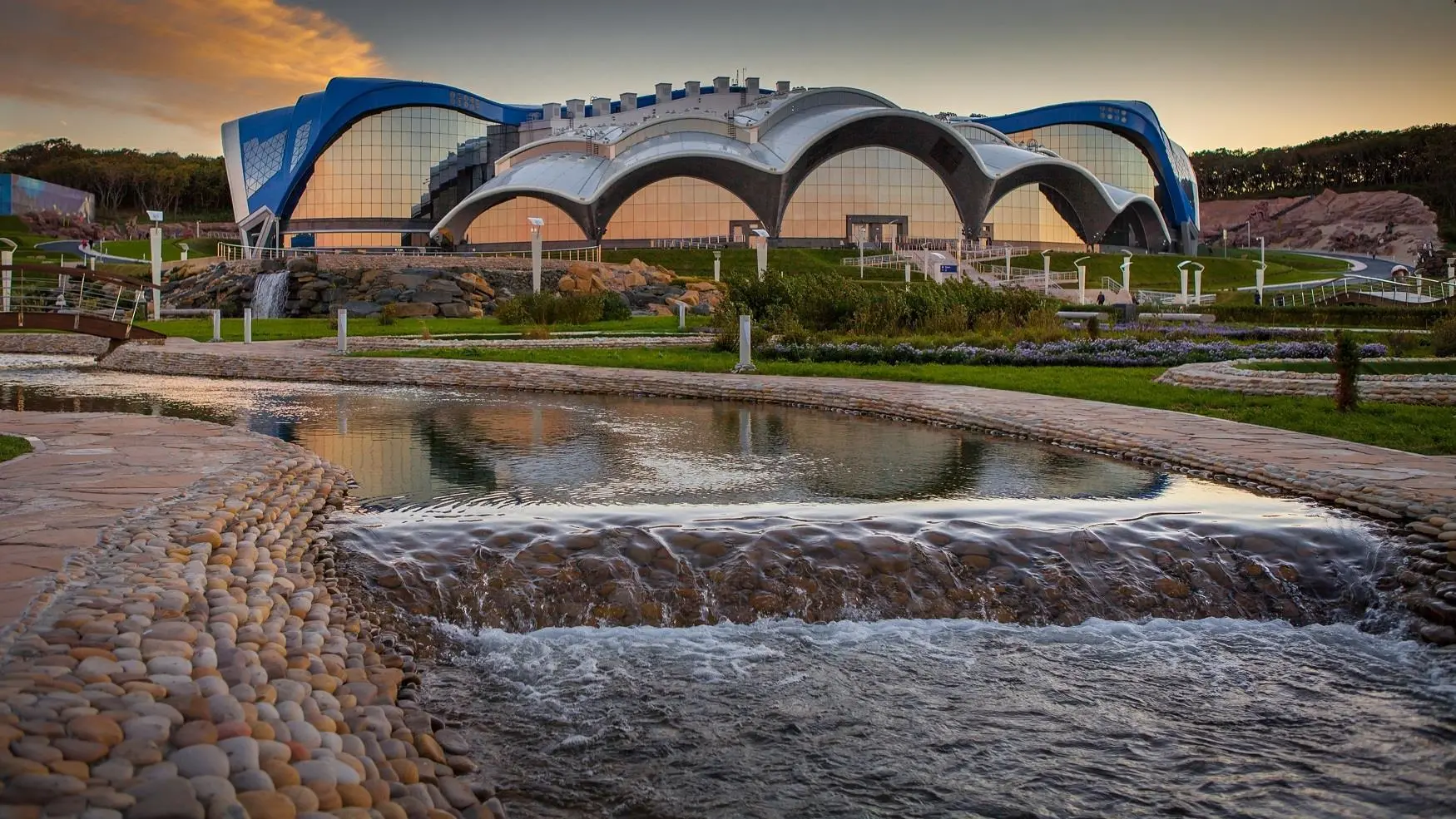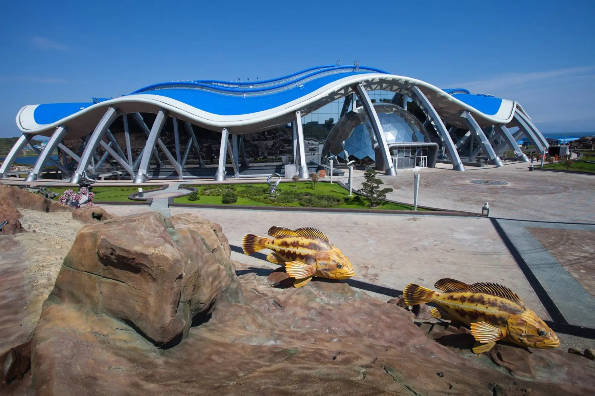 Приморский океанариум во Владивостоке, расположенный на острове Русский. Здание в форме ракушки открывает для своих гостей богатый морской мир с представителями всех океанов и климатических зон.
