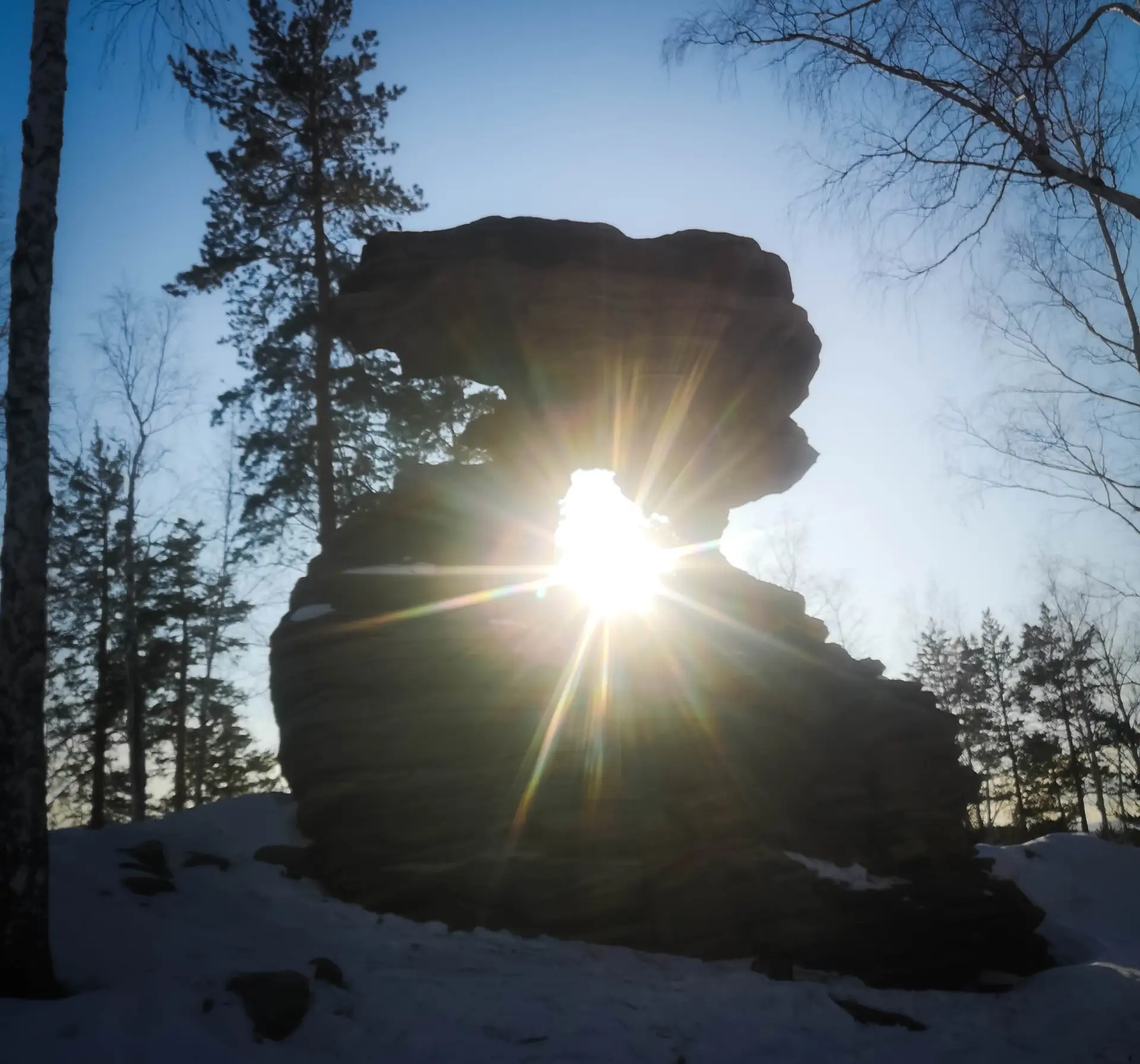 Крылья Дракона – это скала оригинальной формы со сквозным отверстием, живописное и необычное место. Находится в окрестностях поселка Слюдорудник близ города Кыштым Челябинской области.