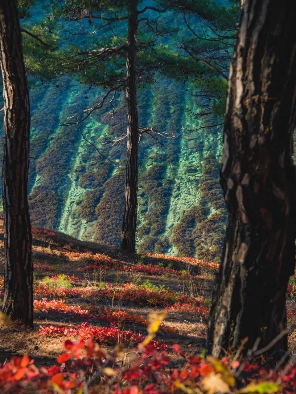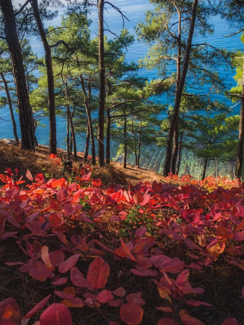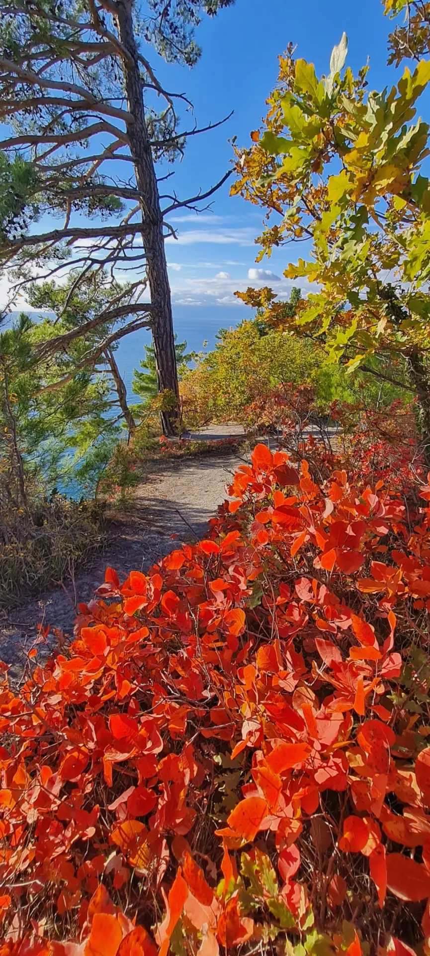 За такой вид нам нужно благодарить скумпию, щедро раскрасившую местные склоны всеми оттенками красного.