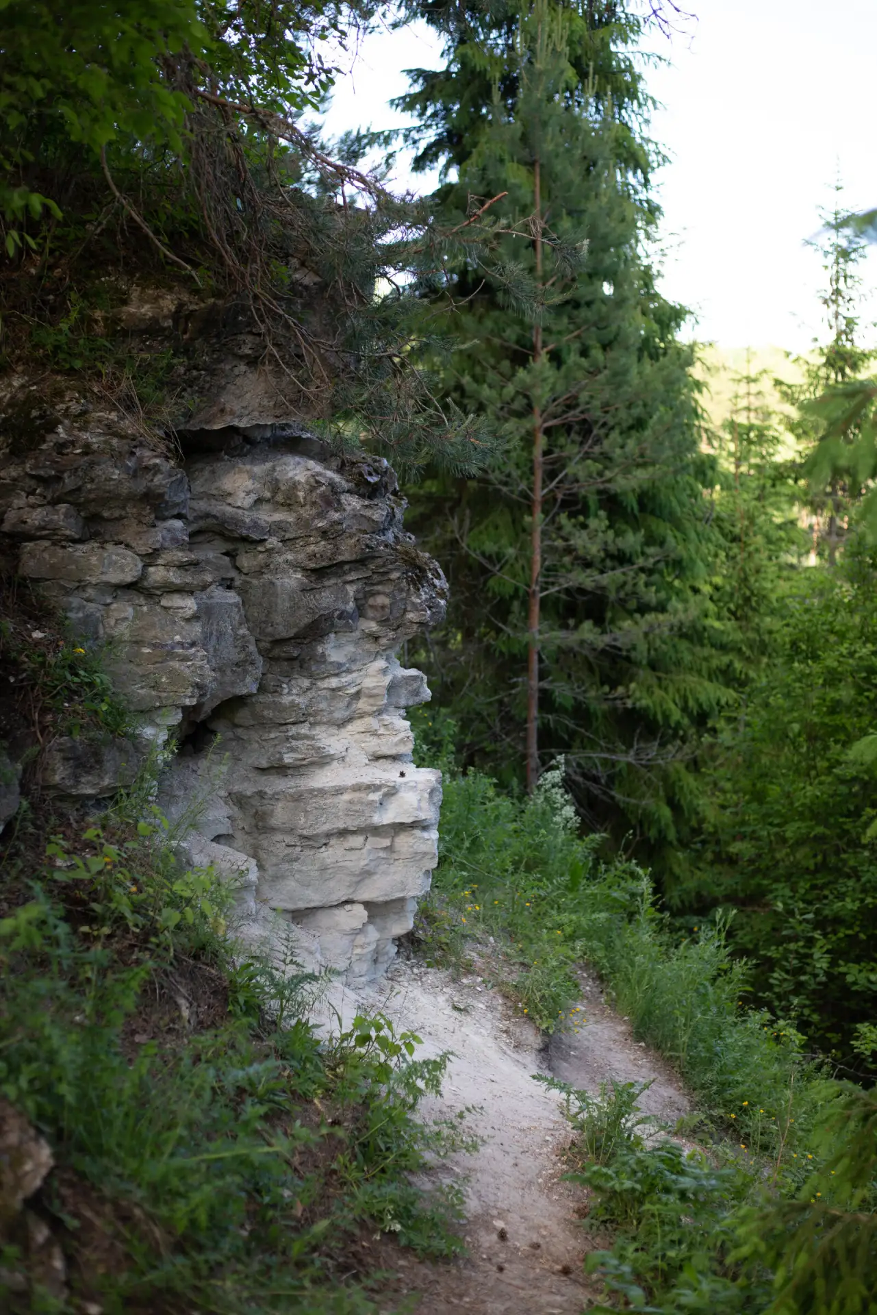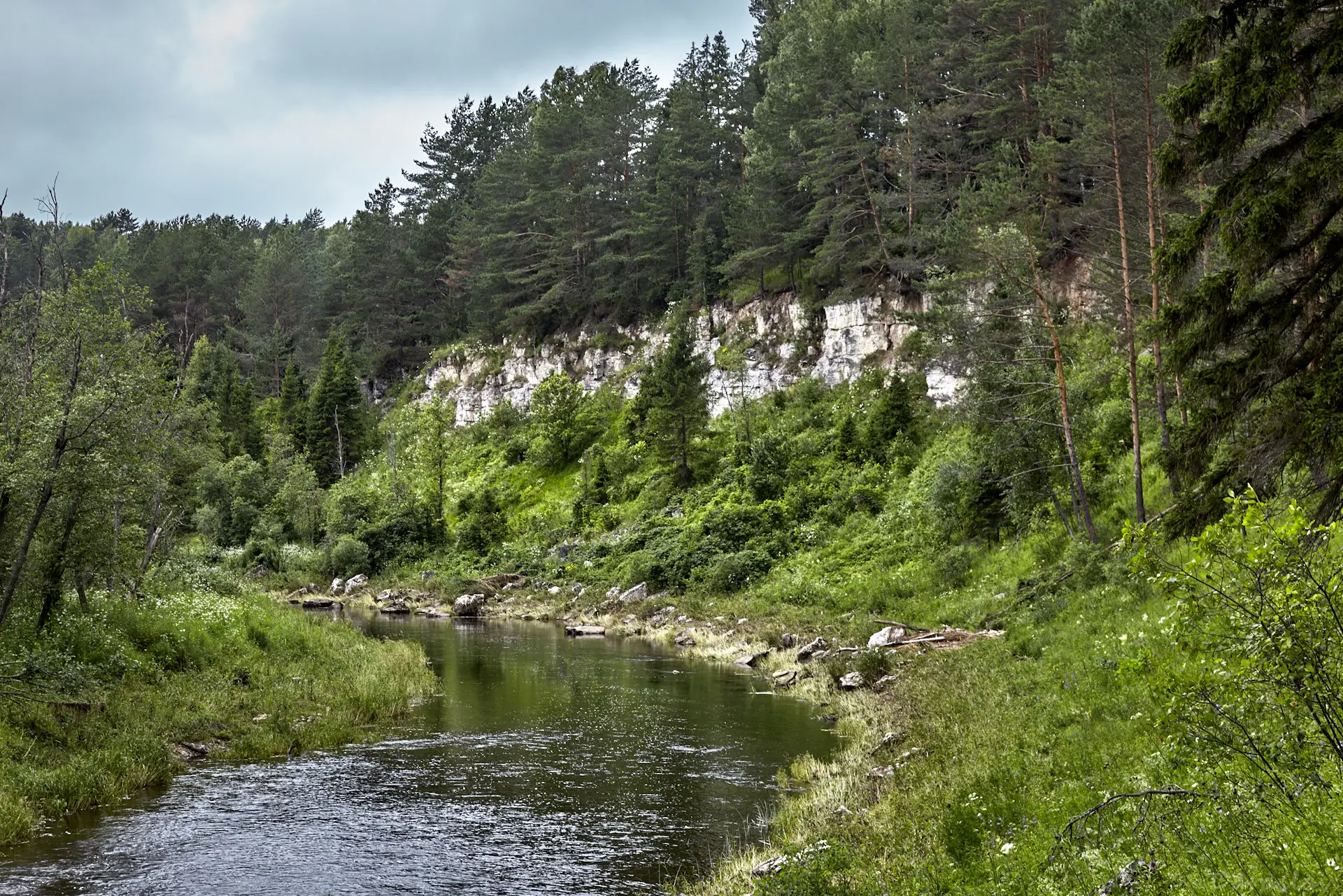 Речка вполне обыкновенная, с живописными берегами, поросшими смешанным и лиственным лесом. И вдвойне удивительно встретить здесь настоящие скальные уступы. Самые массивные и высокие выходы известняка можно увидеть по правому берегу близ населенного пункта Мозгово.
