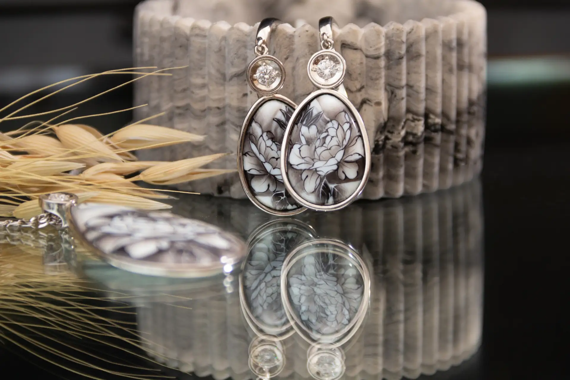 Отличительной особенностью является цветок «обвинская роза» и растительные узоры, покрывающие изделие.