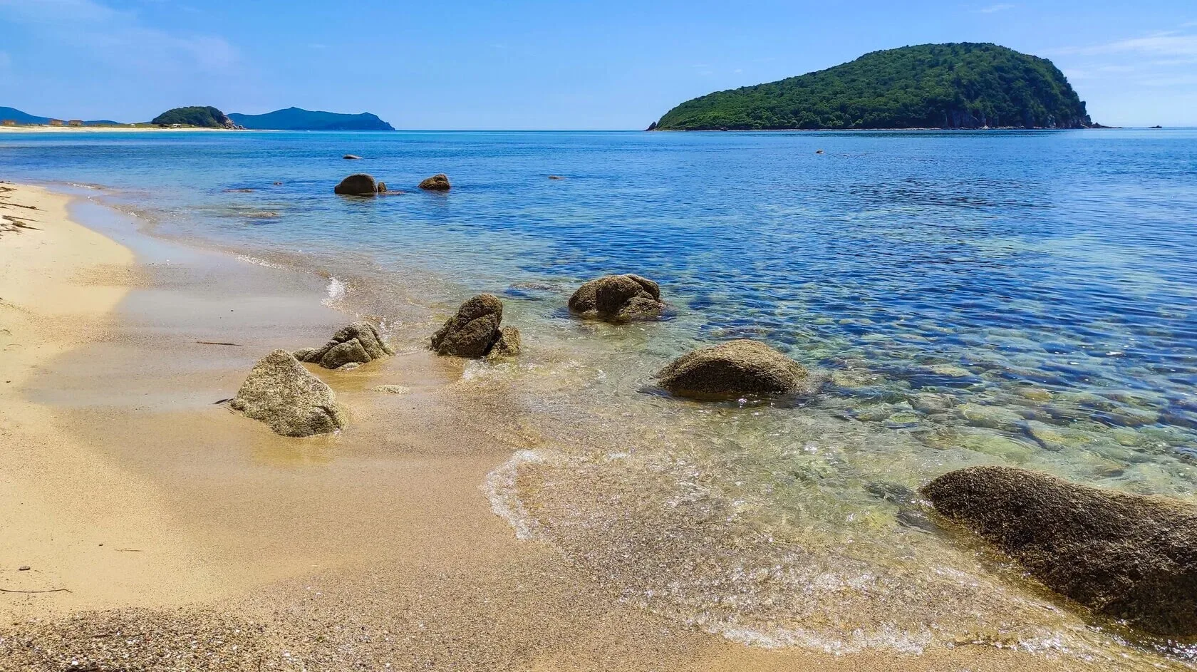 Бухта Петрова — это уголок с красивыми пейзажами и чистейшим морем. Благодаря белоснежному песку вода вблизи берега обретает ярко-голубой оттенок.
