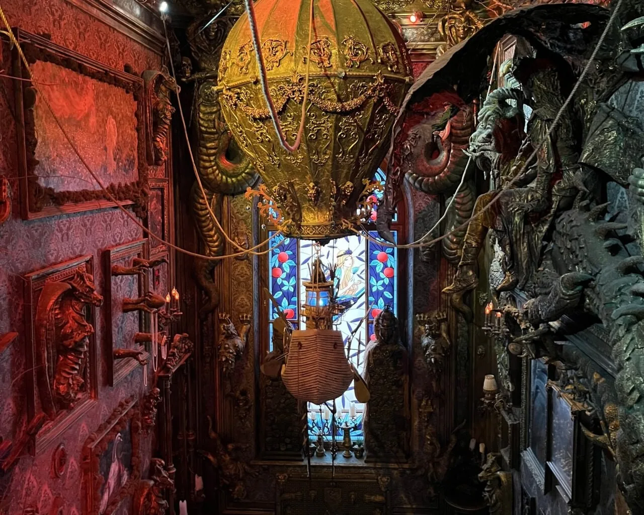 Сказочные обитатели особняка госпожи Целибеевой расположились в парадной, на первом, втором и третьем этажах и на таинственном чердаке. Мистическая атмосфера поддерживается соответствующим освещением.