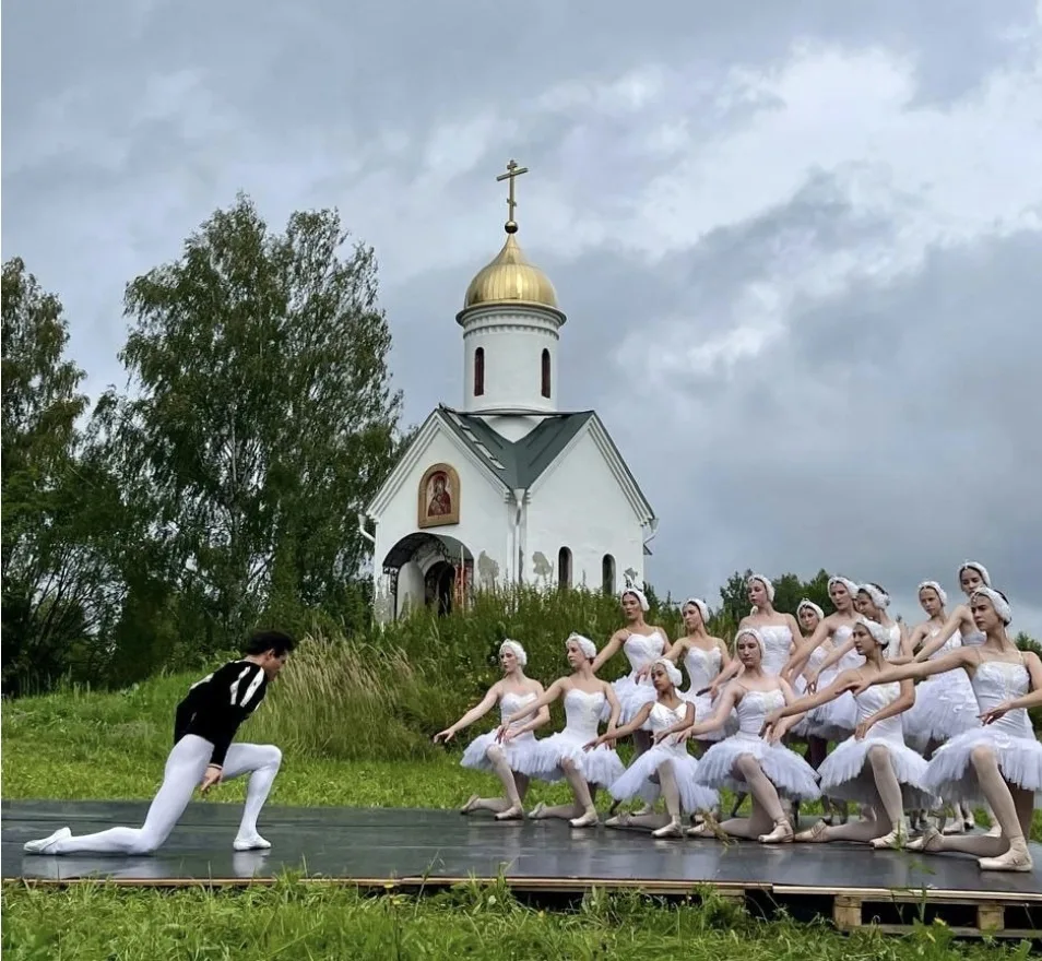 Деревня Кузьмино. Здесь состоялось необычное действо – несколько балерин исполнили балет Петра Чайковского «Лебединое озеро». Сцену для этого оборудовали прямо на деревенском лугу. Придумал такое представление артист балета Анатолий Емельянов, который несколько лет назад переехал жить в деревню из Москвы со своей большой семьей.