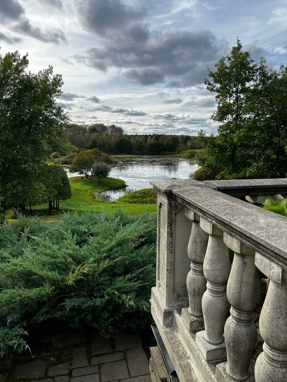 С другой же стороны — английский пейзажный парк со всеми традиционными чертами этого явления: нестрогостью линий, нестриженностью лип и извилистыми тропинками. На противоположном берегу реки разбит так называемый русский усадебный сад.