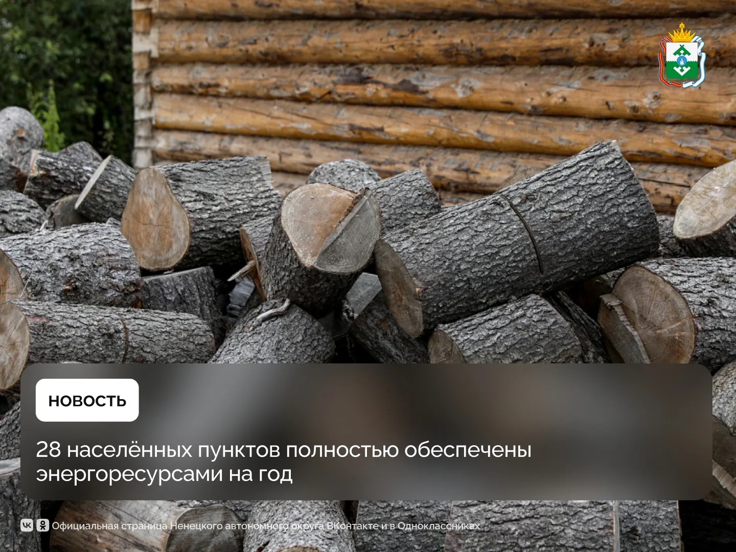 На сегодняшний день энергоресурсами на год в полном объёме обеспечены 28 населённых пунктов НАО.