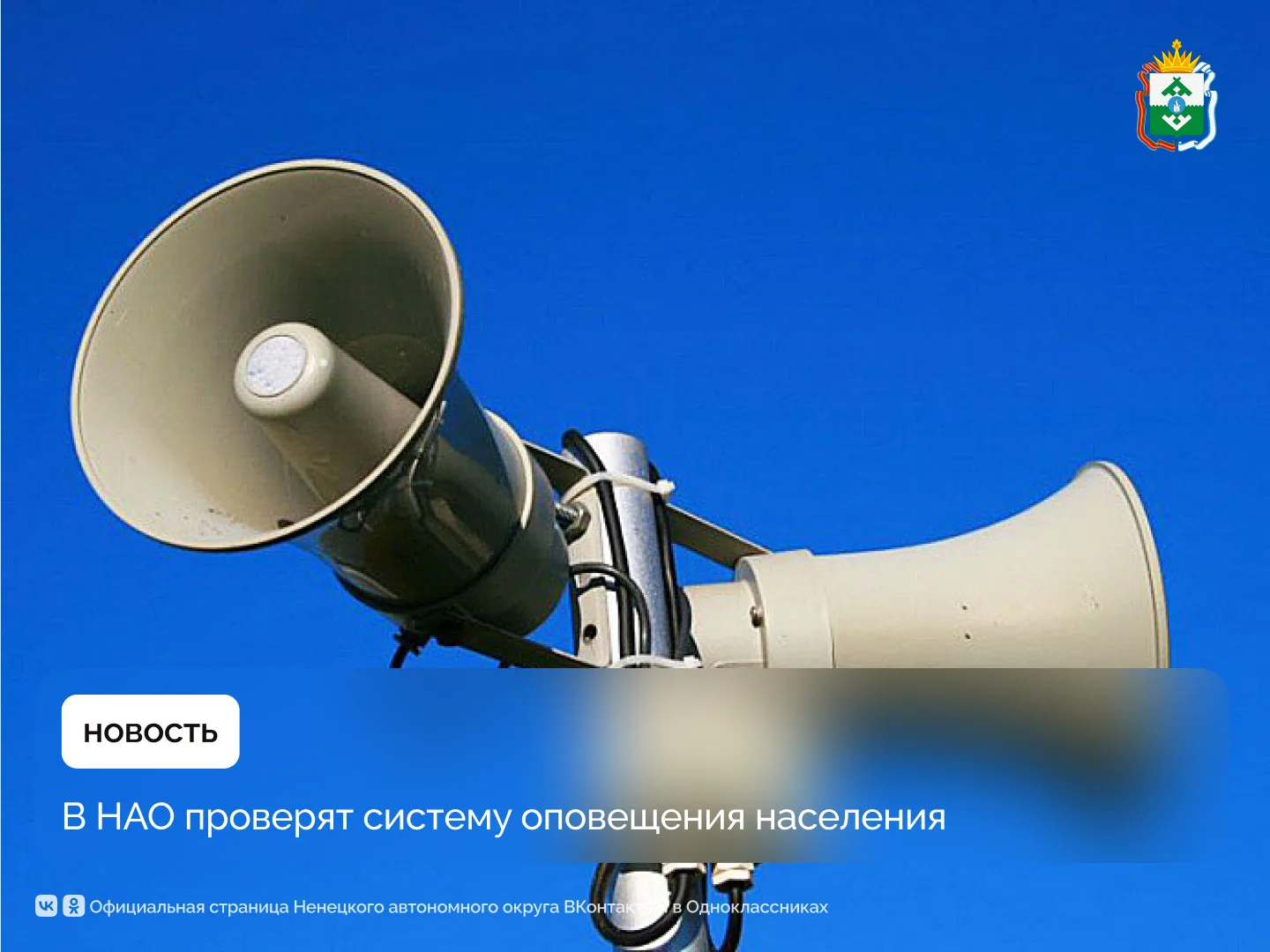 Управление гражданской защиты и обеспечения пожарной безопасности НАО информирует, что 1 октября 2025 года в период с 10.40 до 11.00 в ходе проведения комплексной проверки готовности региональной автоматизированной системы централизованного оповещения населения будет проводиться включение электросирен и громкоговорящей связи.