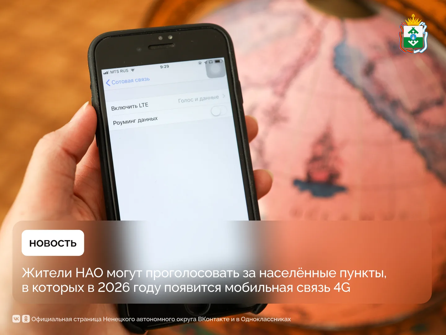 Жители НАО могут проголосовать за населённые пункты, в которых в 2026 году появится мобильная связь 4G