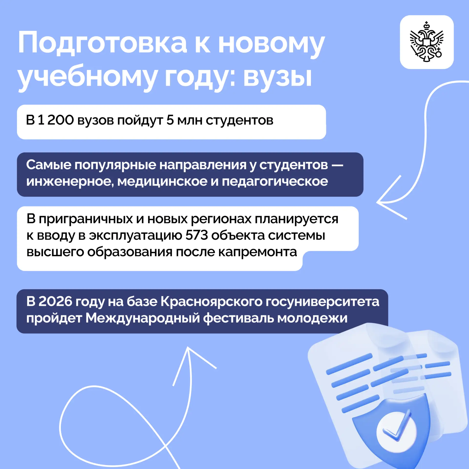 Основными темами обсуждения стали готовность системы образования к новому учебному году, итоги летнего туристического сезона, работа энергосистемы страны в период пиковых нагрузок, а также ситуация в реальном секторе экономики.
