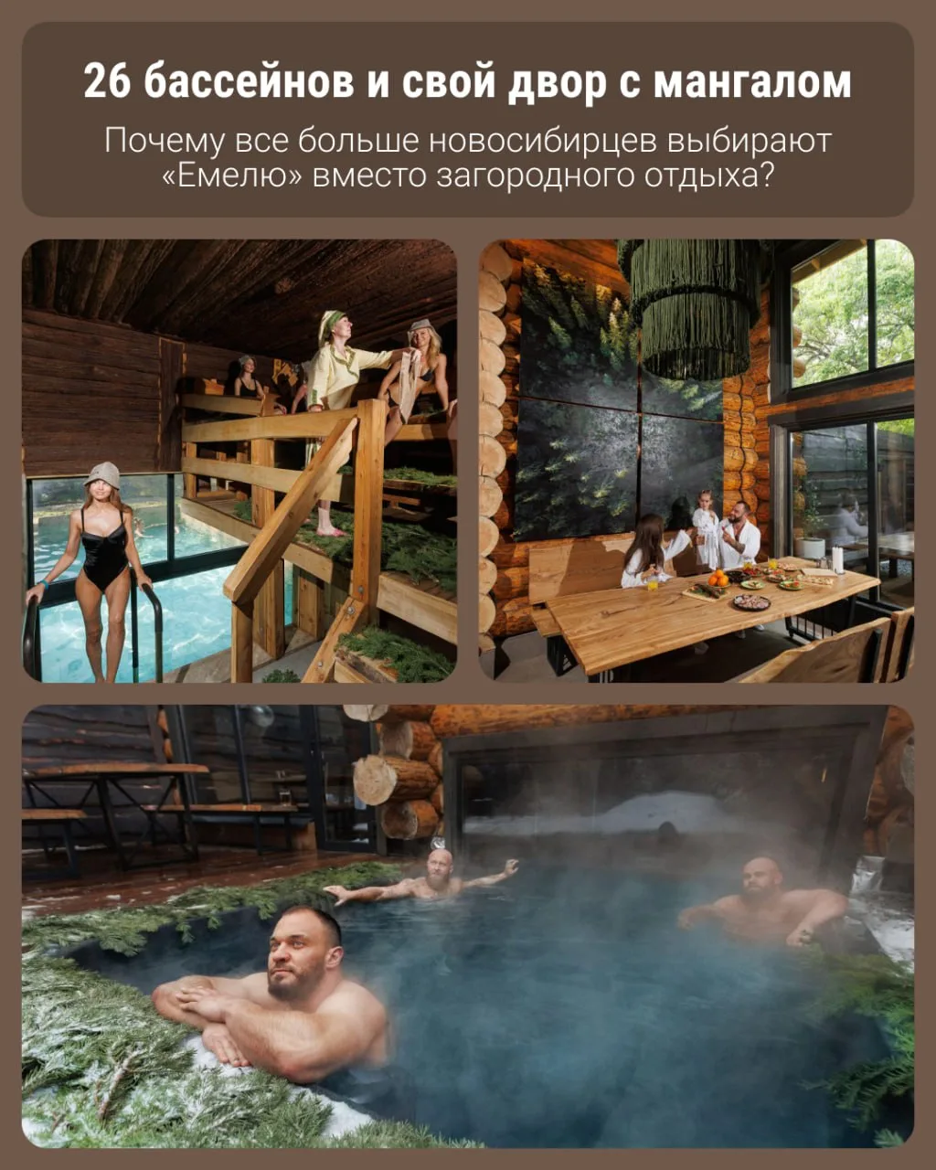 Банные усадьбы «Емеля» — это восемь филиалов на левом и правом берегах Новосибирска.