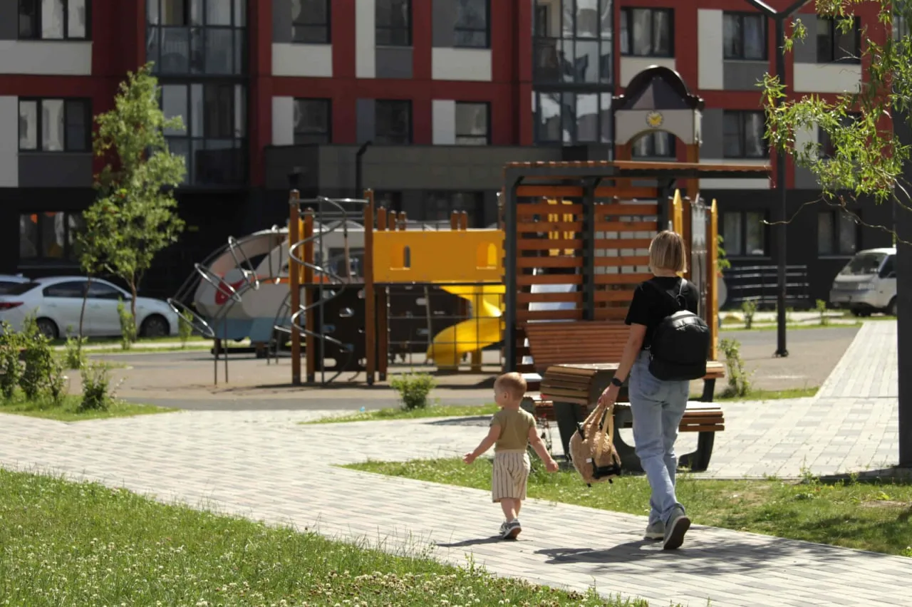Дворы благоустроены так, что дети играют на современных площадках, а взрослые — наслаждаться неспешными прогулками и спортом на свежем воздухе.