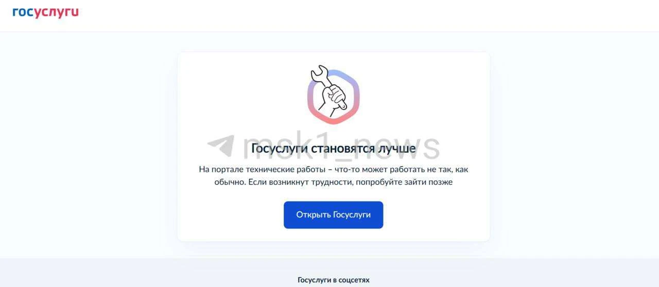 «Госуслуги» сбоят — у многих не открывается ни веб-версия, ни приложение. На сайте предупреждают о технических работах.