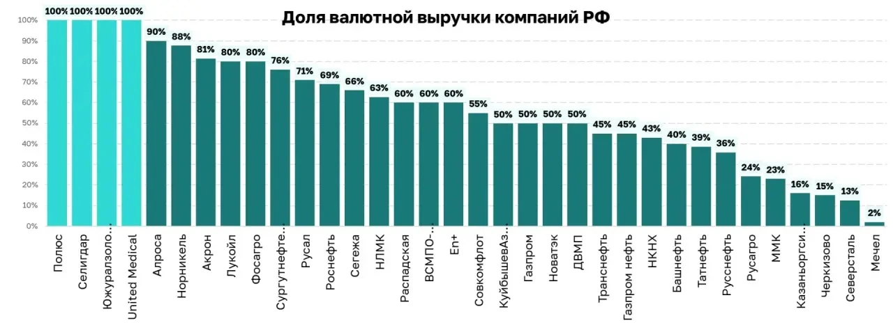 Представляю вам топ компаний России, у которых выручка сильно зависит от стоимости валюты.