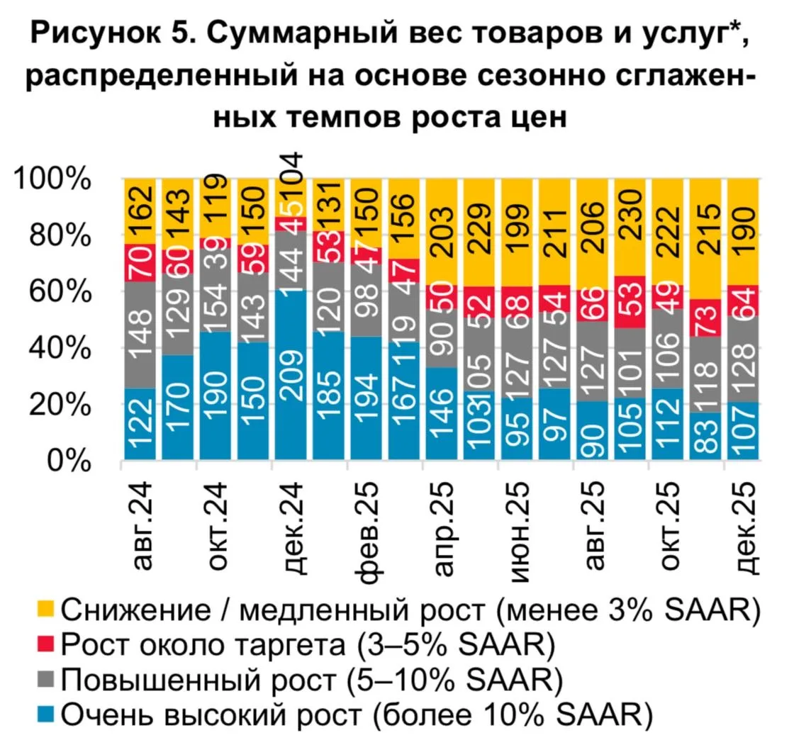 Прогноз инфляции на 2026 год повышен до 4,5–5,5%.