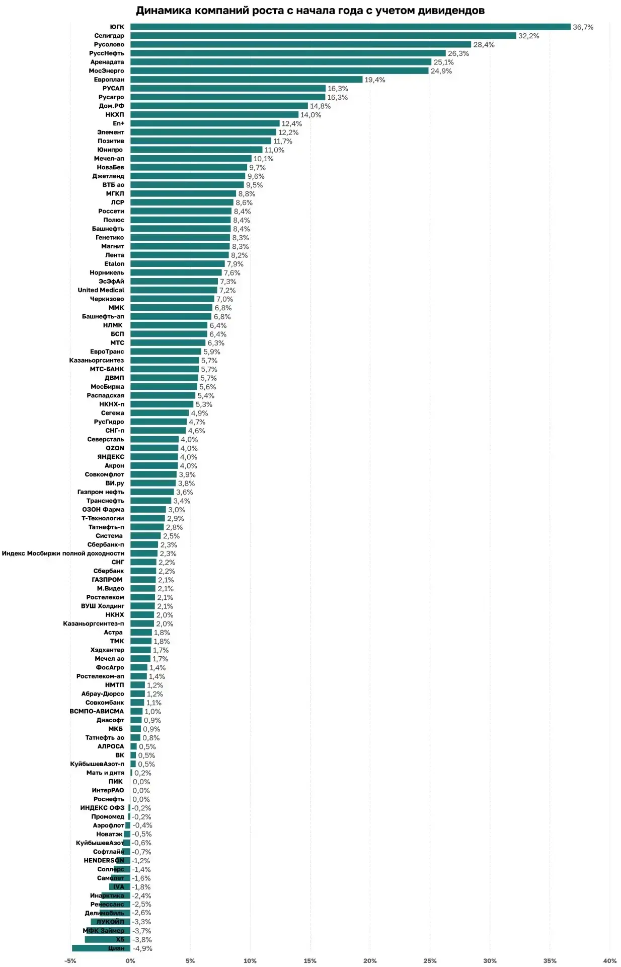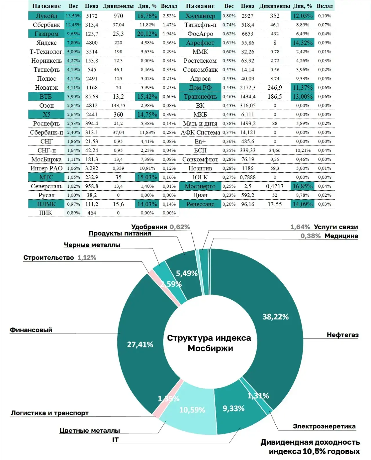 Доходность индекса складывается из двух компонентов: изменение цены акций и дивиденды, которые выплачивают компании.