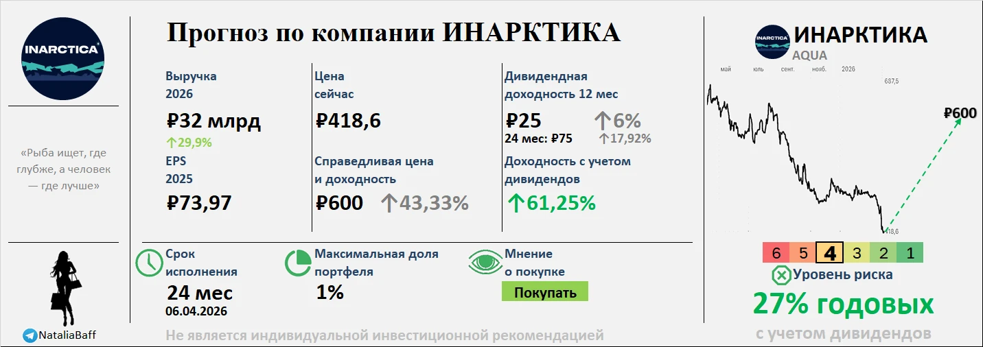 Инарктика за год отчиталась слабо по финансовым метрикам, но при этом считаю, что текущая просадка во многом носит переходный характер. Компания ожидаемо показала заметное снижение выручки, EBITDA и скорректированной прибыли, а также вышла в чистый убыток на фоне сохраняющегося влияния изменений логистики, реализации биорисков и более низких цен на красную рыбу, при этом рост чистого долга дополнительно отражает давление на финансовый профиль. Однако в операционном плане отчет выглядит более обнадеживающе: компания наращивает вертикальную интеграцию через развитие собственных мальковых заводов, успешно провела зарыбление, увеличила биомассу в воде до более чем 30 тыс. тонн и тем самым создала базу для восстановления объемов реализации и улучшения результатов в следующих периодах. С учетом продолжающегося роста спроса на красную аквакультурную рыбу в натуральном выражении я считаю, что долгосрочная инвестиционная история Инарктики возможна при текущих ценах, но краткосрочно компания остается в фазе восстановления, и устойчивое улучшение финансовых показателей будет зависеть от реализации производственных планов, нормализации операционных рисков и конъюнктуры цен.