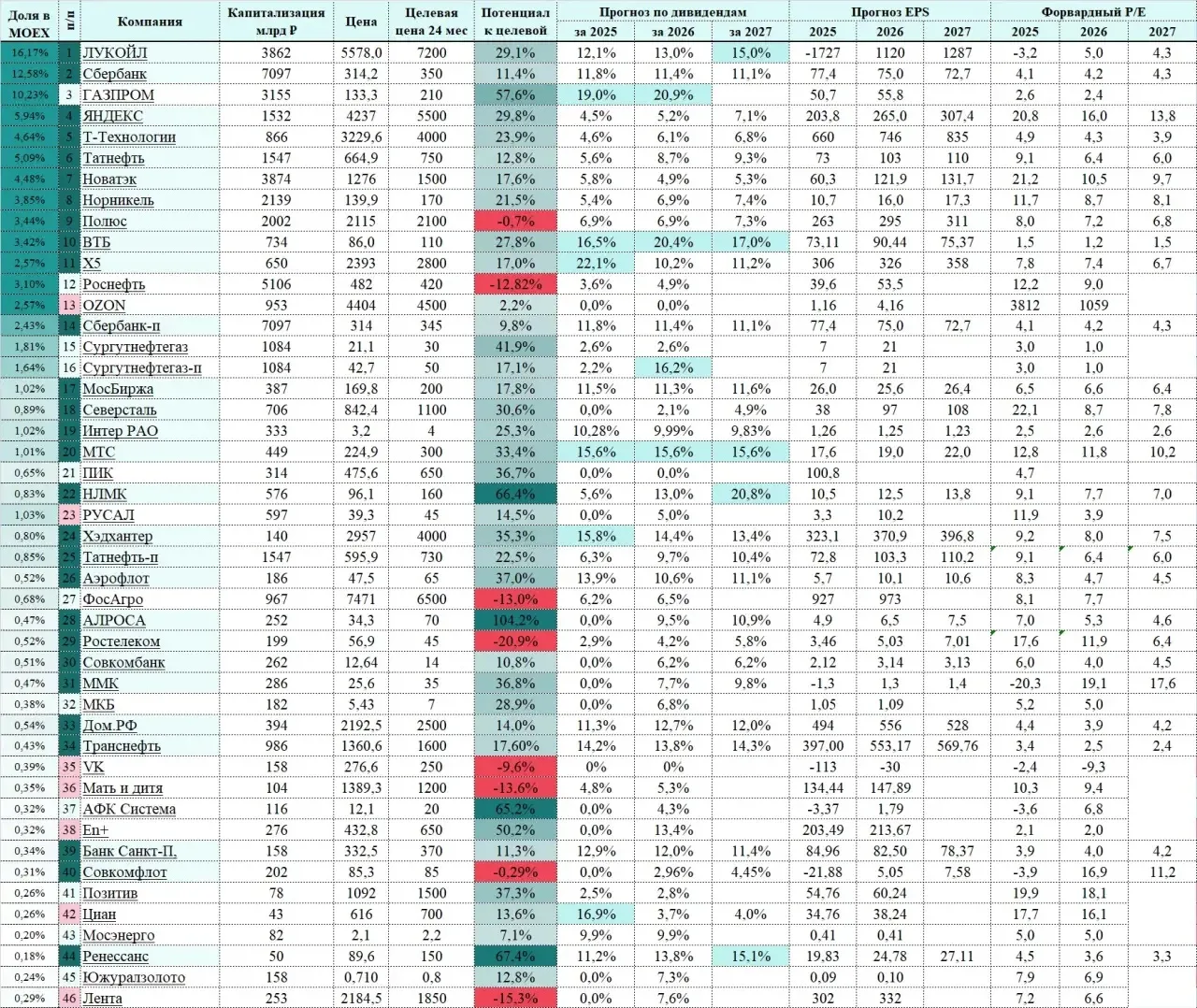 Постепенно обновляю таблицу. Добавляю ожидания на 2027 год по компаниям, у которых вышли отчеты за 2025 год.