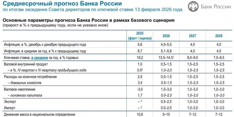 Прогноз средней ставки 13,5–14,5% в 2026 году предполагает, что к концу 2026 года ключевая ставка может находиться в диапазоне 10–12%, при условии отсутствия дополнительных инфляционных шоков.