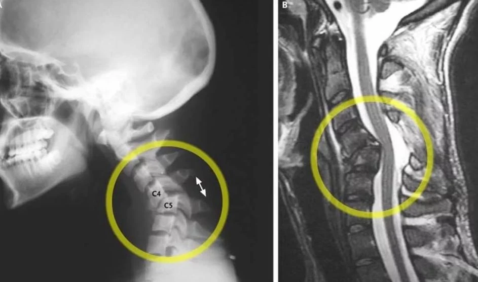 Шейный отдел — самый подвижный и уязвимый отдел позвоночника. При сильном ударе происходит перелом шейных позвонков и разрыв спинного мозга, что приводит к мгновенной смерти.