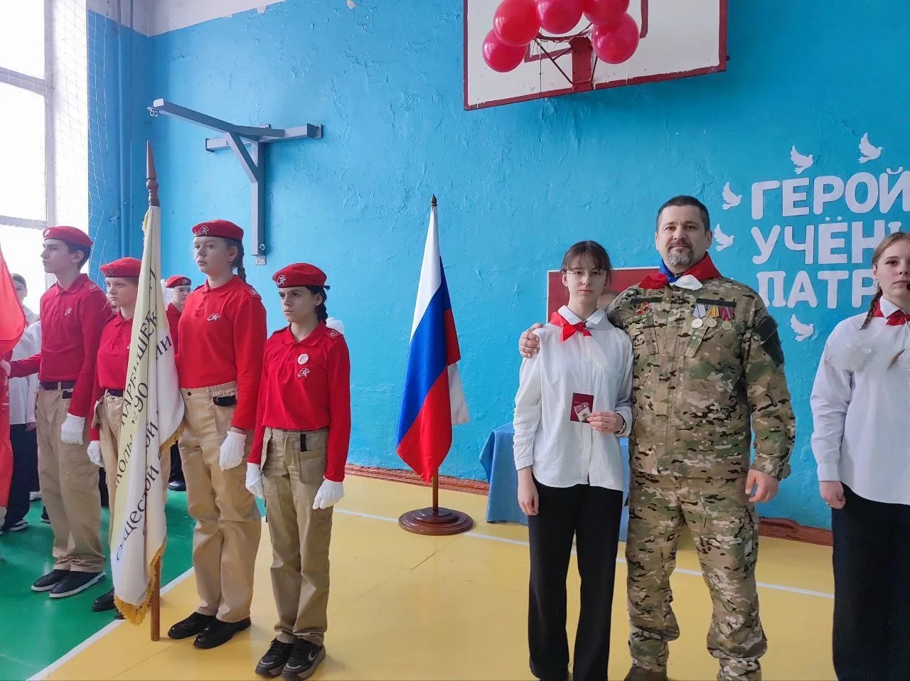Ветераны, бывшие несовершеннолетние узники фашистских концлагерей, представители власти и общественных объединений, студенты и обучающиеся школы почтили память Дмитрия Михайловича минутой молчания. Заместитель командира инженерно-саперного батальона им. Карбышева на СВО Сергей Брехт вручил золотой значок ГТО обучающейся 11 класса, активистке детского общественного объединения «Юные карбышевцы», юнармейцу Анне Яшиной.