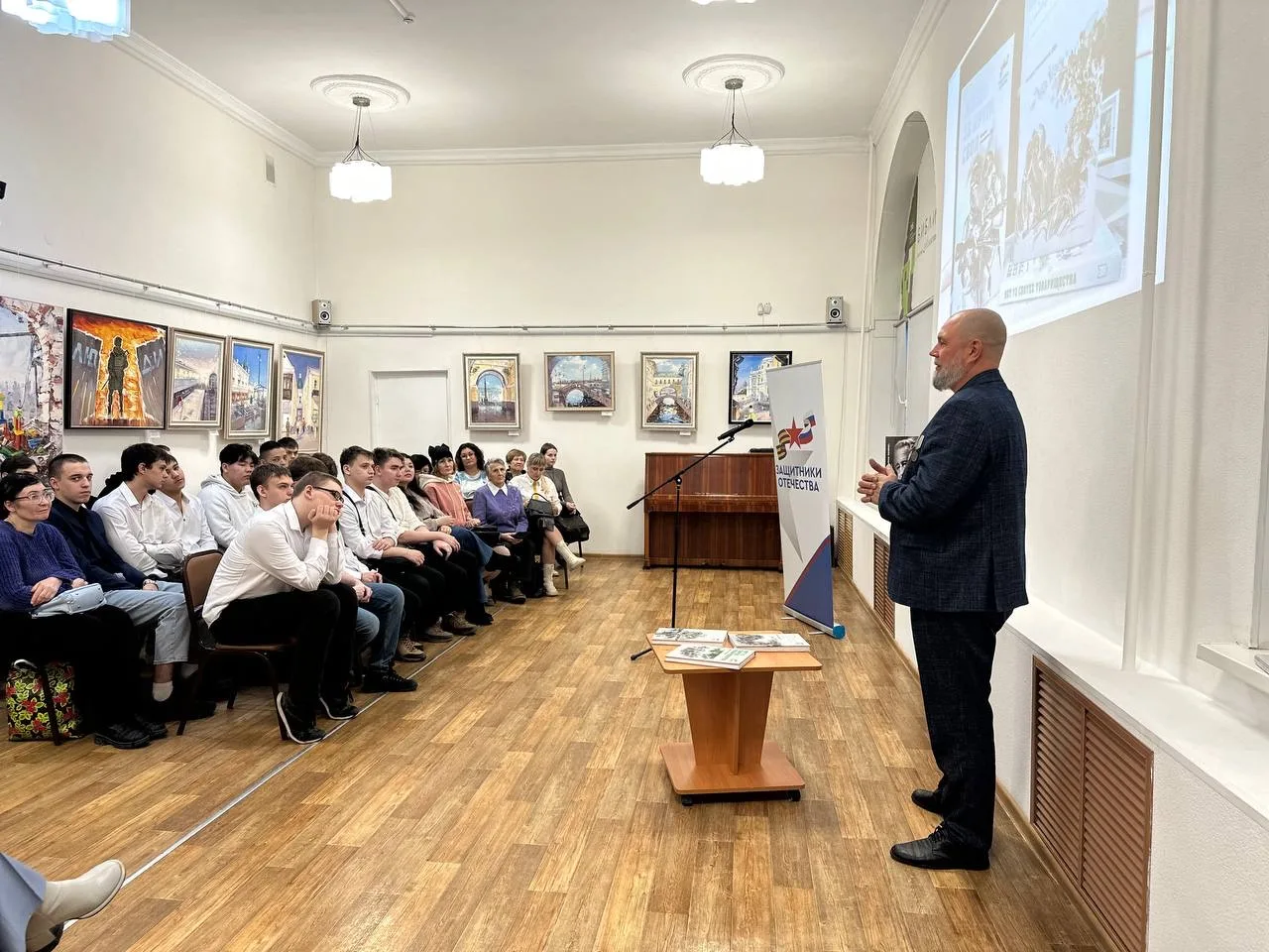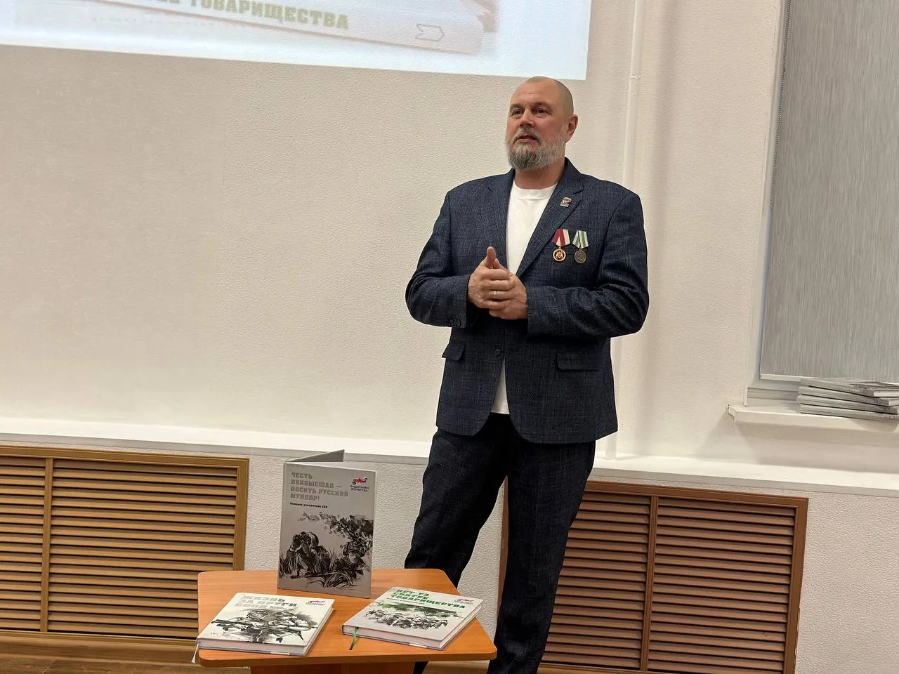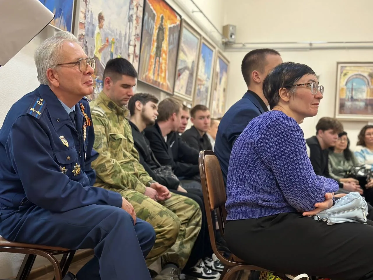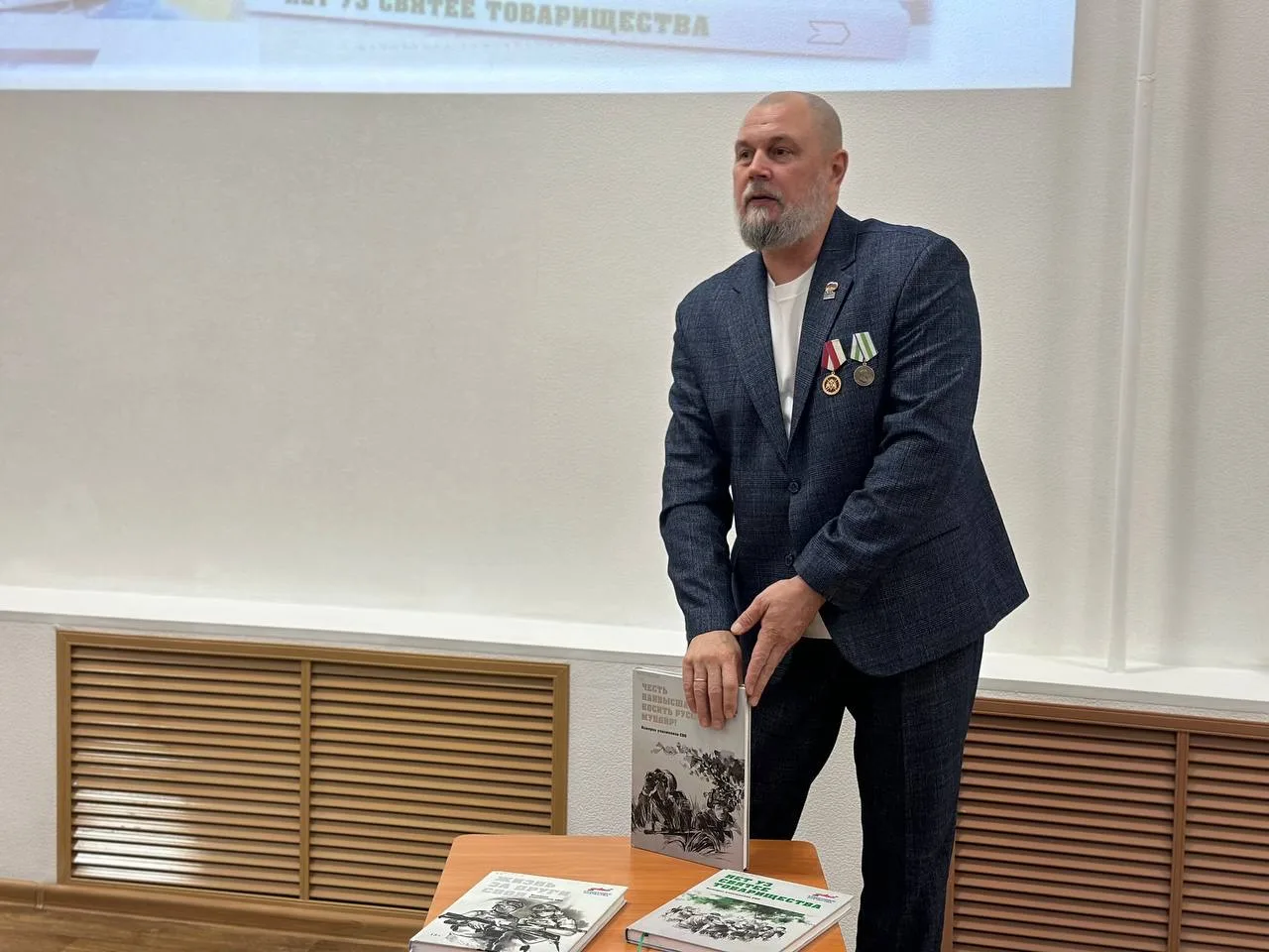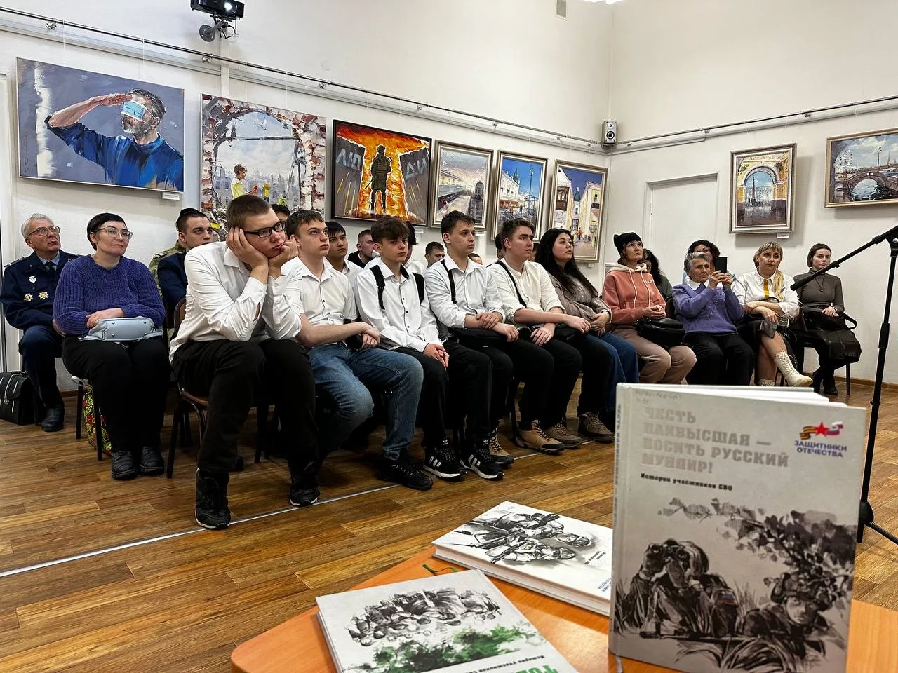 Презентация книги собрала представителей нескольких поколений, в том числе, ветеранов Великой Отечественной войны, Афганского и Чеченского конфликтов, а также участников СВО. Особое внимание всех присутствующих привлек ветеран Великой Отечественной войны Василий Иванович Смирнов, который, несмотря на преклонный возраст, смог поделиться с молодежью важными напутственными словами о долге и любви к Родине.
