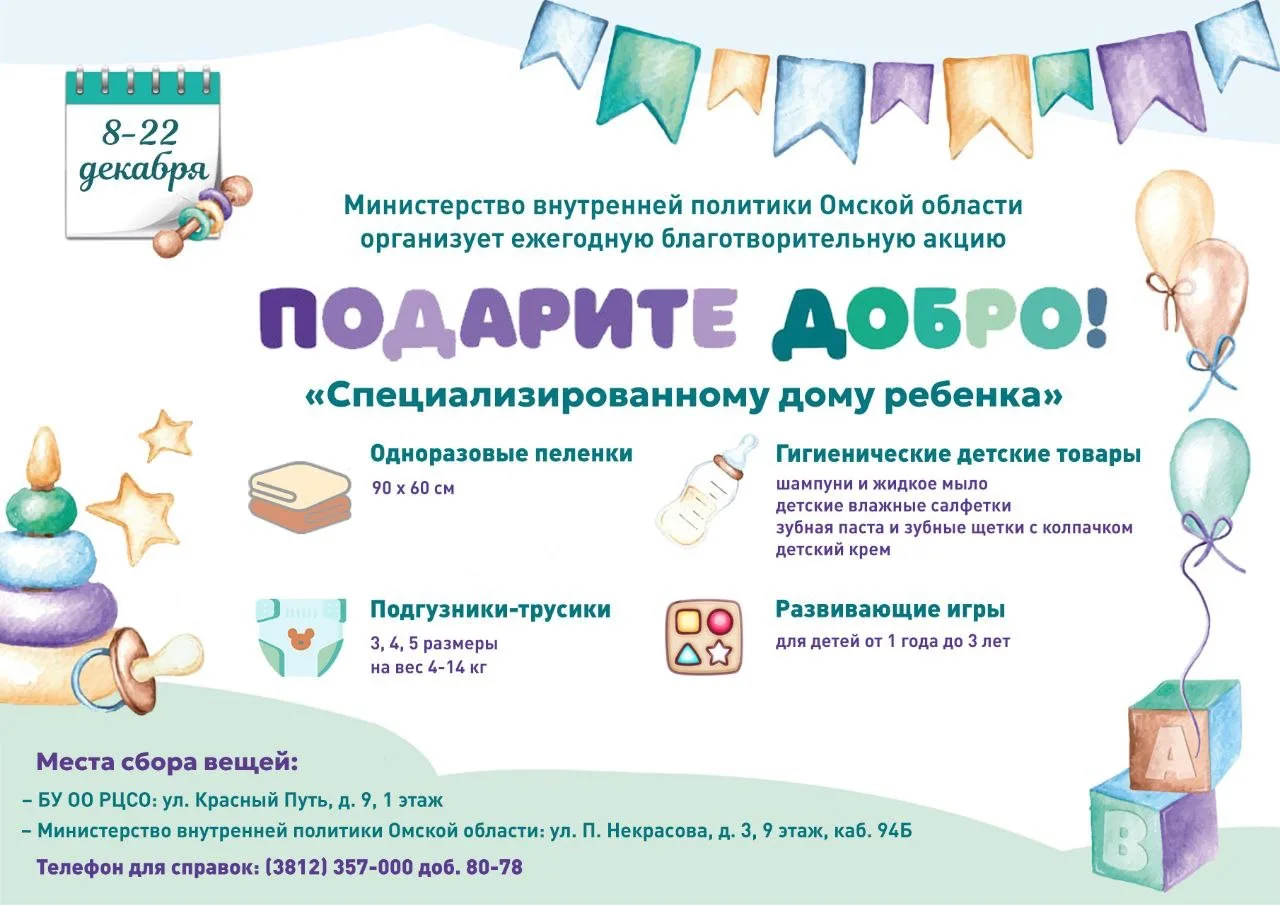 Министерство внутренней политики Омской области приглашает принять участие в традиционной благотворительной акции «Подарите добро!»