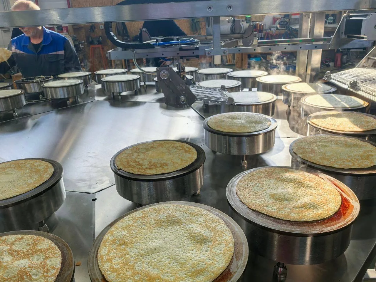 15 минут и линия карусельного типа изготовила 250 пористых, румяных и ароматных блинов.