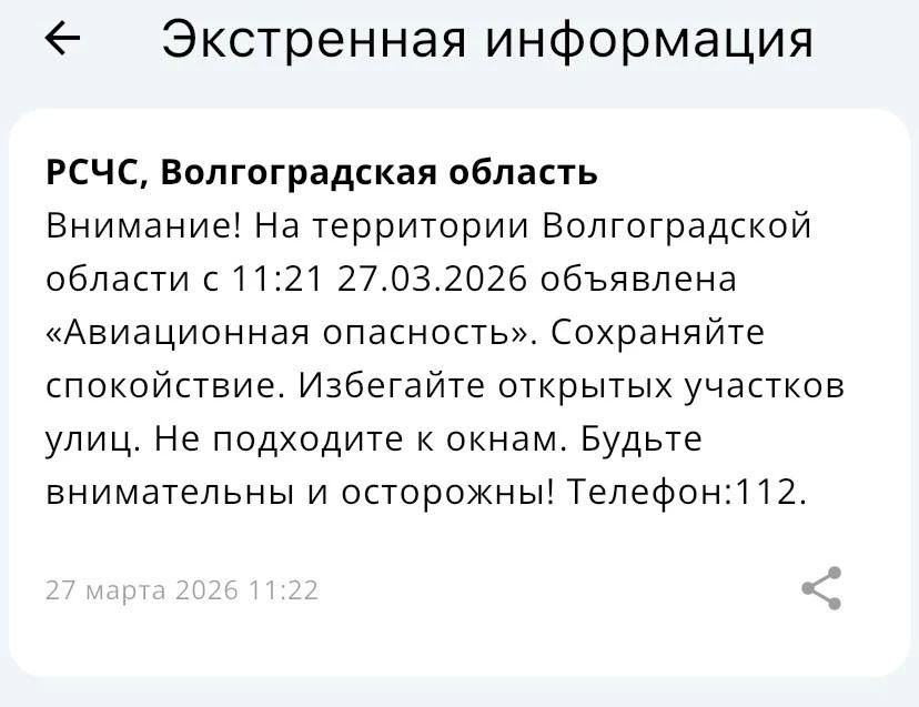 ‼️ Авиационную опасность впервые объявили в Волгоградской области