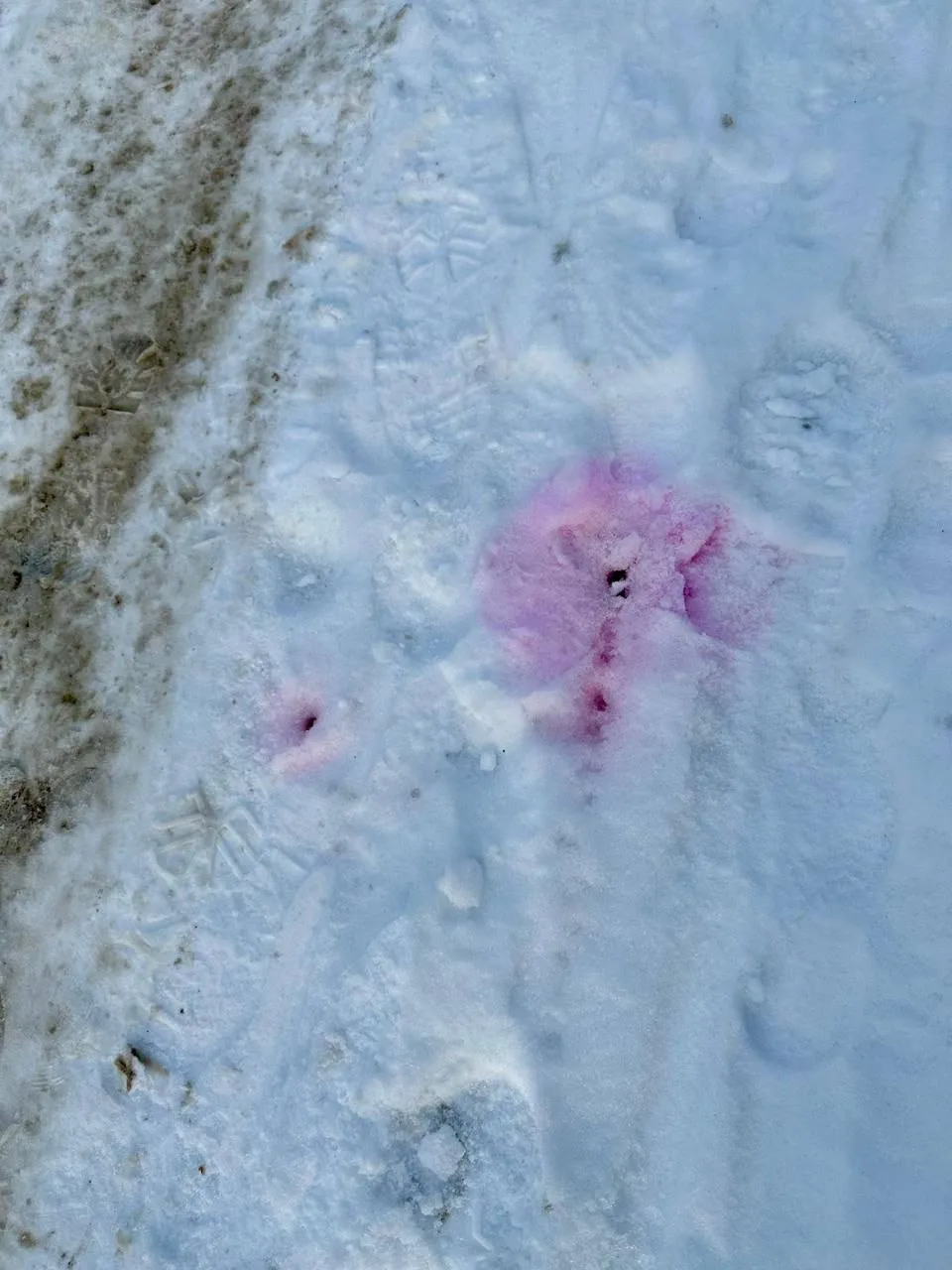 Это жидкость розового цвета разлита повсеместно, в тч рядом с детскими площадками!!! Люди видели, как дети валяются в снегу и лепят снежки рядом с этой дрянью!!!