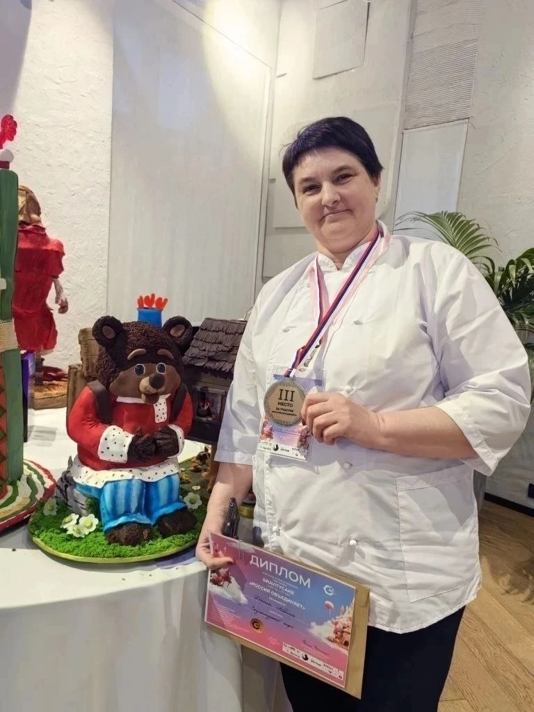 Кондитер представила торт, вдохновлённый темой чемпионата «Россия объединяет». В своей работе Альбина воплотила сюжет русской народной сказки «Маша и медведь». Жюри оценивало не только сложность конструкции, но и технику декора, а также вкус начинки. По итогам соревнования торт кондитера из хутора Безымянка занял третье место. Сама победительница призналась, что очень рада такому результату.