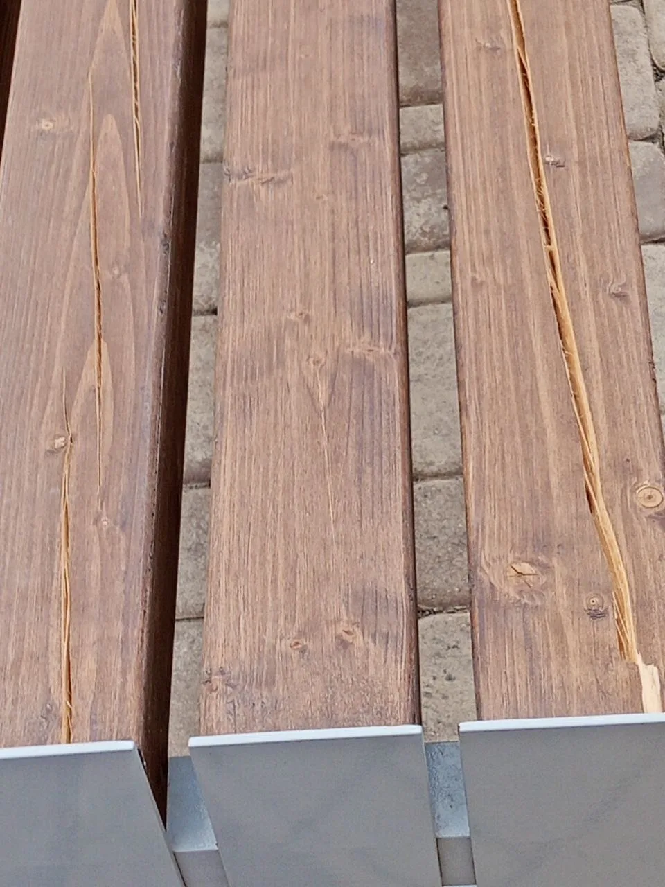 Увеличьте фото если вам не видно, на всех скамейках деревянные доски потрескались в нескольких местах. Причём это на всех досках и на всех скамейках. Хотелось бы вам сесть самим или посадить ребёнка?»