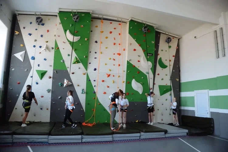 После ремонта спортивного зала детям заниматься здесь стало гораздо интереснее. Скалолазание — это не просто забава, а серьезная физическая нагрузка. Спортсмену нужно выстроить маршрут, подключить логику и выносливость.
