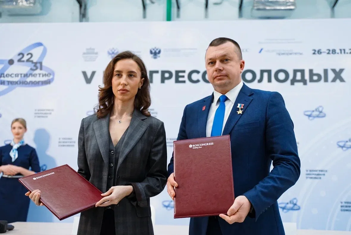 Площадка стенда знакомит гостей Конгресса с научным направлением деятельности Движения Первых, актуальными проектами и возможностями развития для детей и молодежи страны.