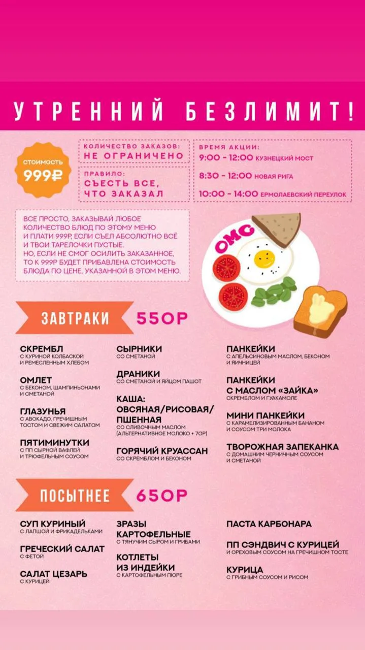 Нужно съесть большую пасту «Сырное безумие» и тогда можно получить бесплатно не только блюдо, но и депозит в 5000₽ на следующее посещение.