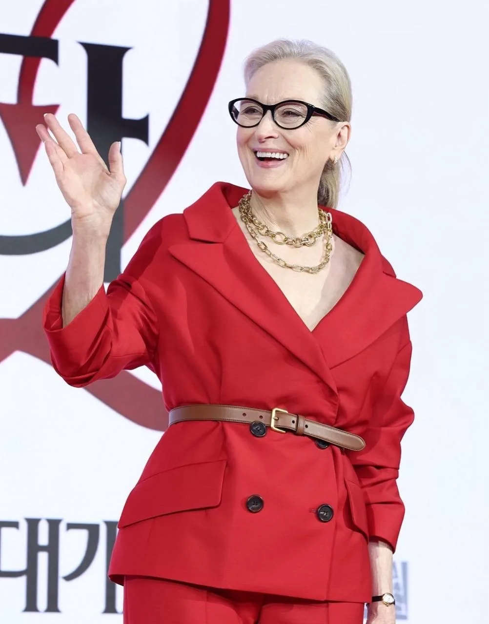 Следующая остановка — Сеул: на пресс-конференции Мэрил Стрип появилась в костюме Prada, а Энн Хэтэуэй выбрала тотал-лук Vaquera из последней коллекции.